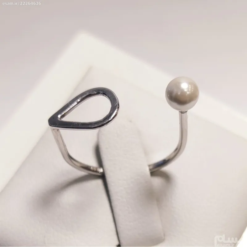 انگشتر زنانه نقره مدل مینیمال قطره و مروارید