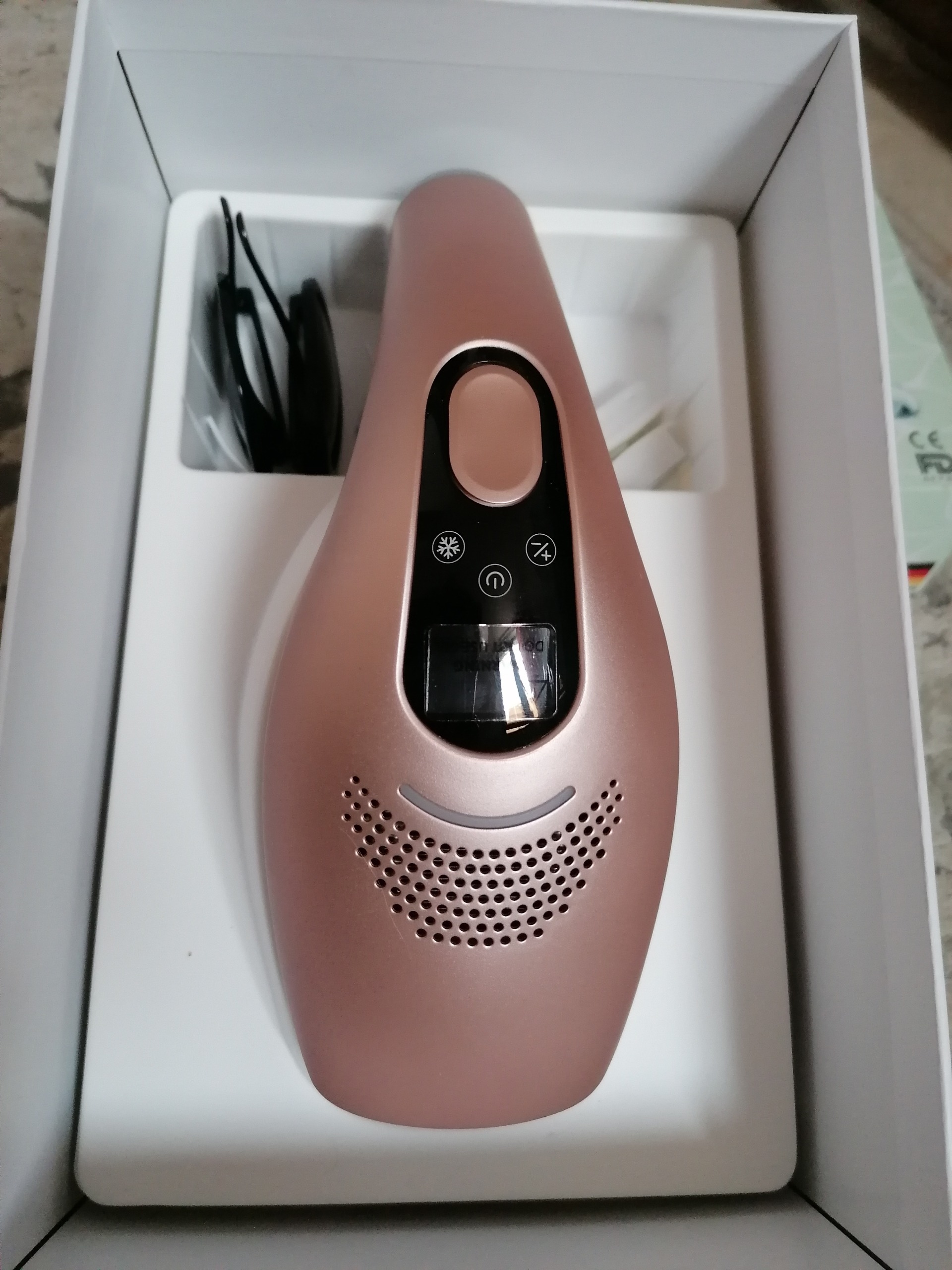 کاملا سالم و نو هست مقدار خیلی کمی باهاش کار شده دارای سه سری(موهای زائد*جوانسازی*و ضد آکنه) هست که میتونید اگه خواستید از خود شرکتش سری های نو سفارش بدید ولی همین هایی هم که داره قابل استفاده هست و فقط مقدار کمی سری موهای زائد استفاده شده