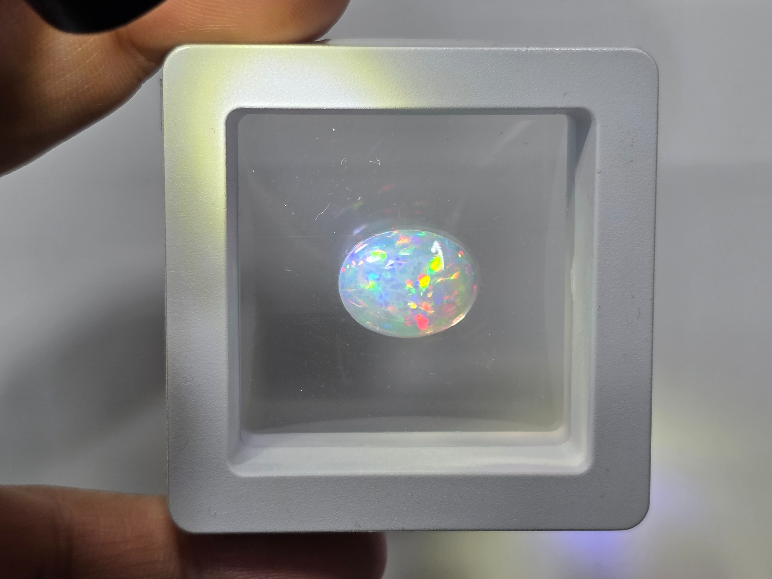 اُپال سفید منحصر به فرد رویال فول تلالو یعنی نهایت یک تلالویی که میشه در یک اپال شاهد بود بسیار ناب و کمیاب در این کیفیت محصول کشور اتیوپی به وزن 4 قیراط منحصر به فرد در این سایز با تونالیته رنگ عالی و خاص سفید شیری همچنین اُپال کشور اتیوپی در رتبه دوم از نظر کیفیت و مرغوبیت در دنیا قرار دارد . این گوهر گرید شده توسط شرکت معتبر GRA آمریکا میباشد . گوهر داخل باکس مخصوص به صورت پلمپ با هولوگرام امنیتی و شیرینگ میباشد