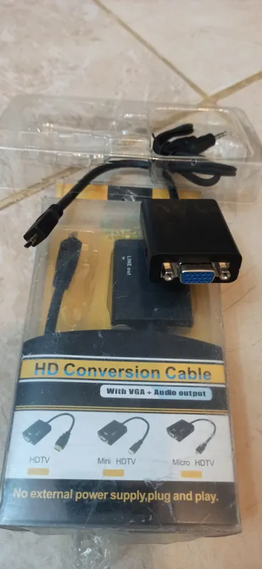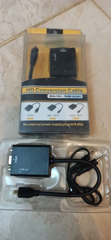 تبدیل mini usb به VGA.دقیقا مطابق تصویر موجود در سایت ایسام من.به شرط سلامت فیزیکی ،لطفا از سایر محصولات عرضه شده در سایت ایسام من دیدن فرمایید.