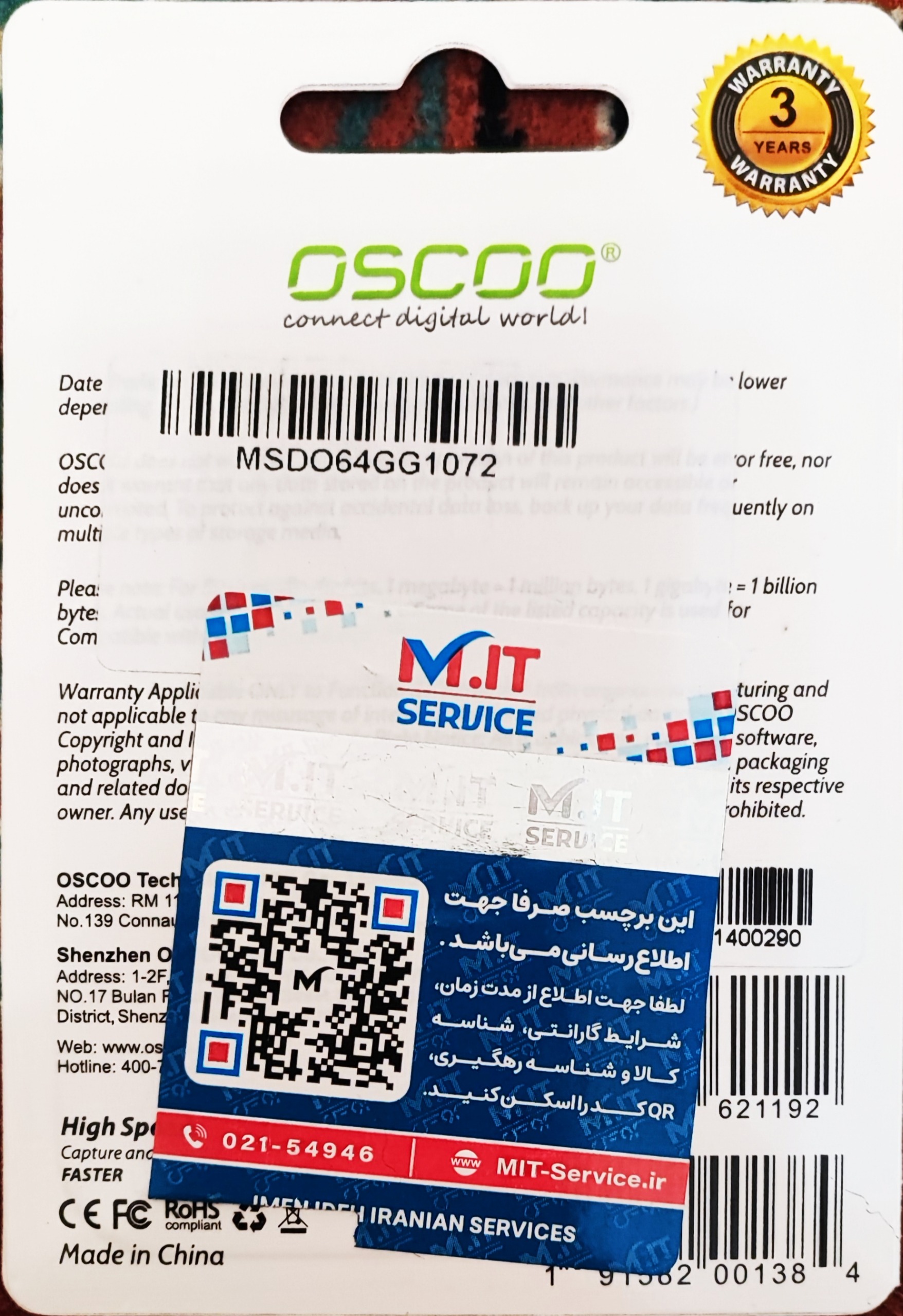 کارت حافظه 64 گیگ اسکو ، گارانتی mit