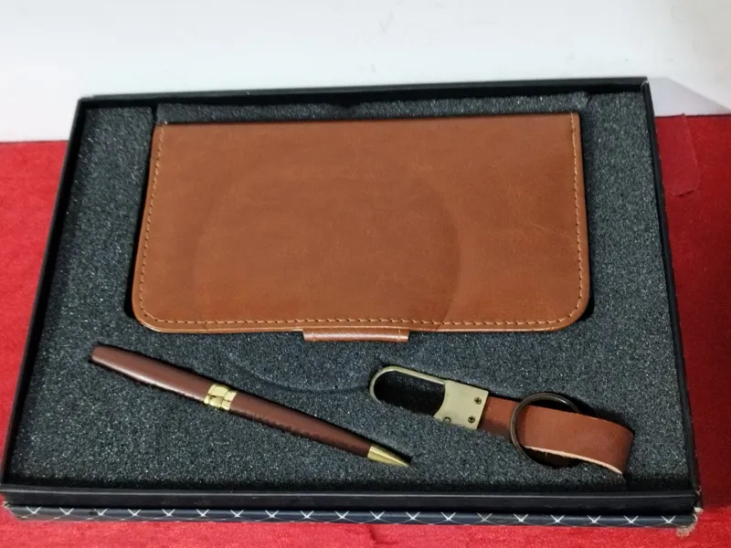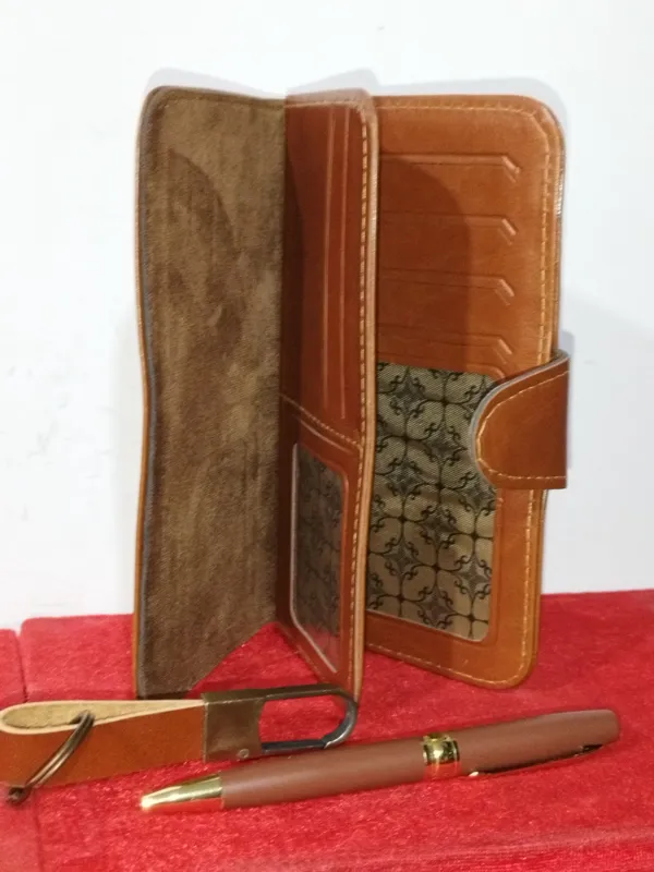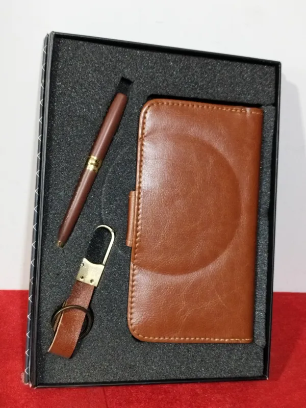 ست کیف مردانه چرم همراه خودکار و جاکلیدی