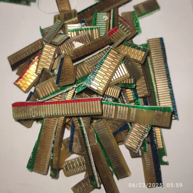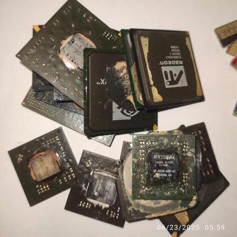 من تصمیم به کار استخراج داشتم اما با توجه به کمی امکانات و نداشتن سرمایه کافی برای خرید کوره و... موفق به انجام نشدم این قطعات رو خرد کردم و بدون کوچکترین کسری حتی پیچهایشان موجود هست با هیتر چیپ ها رو جدا کردم و فینگر ها رو بریدم 16 عدد کارت گرافیک قدیمی پر طلا و 15 عدد رم قدیمی که بیشتر SD یا DDR1 بودند و 12 عدد مودم خیلی قدیمی همه ی چیپ ها و فینگر ها و بدنه ها بدون کسری موجود هستند که فقط جدا سازی شده.