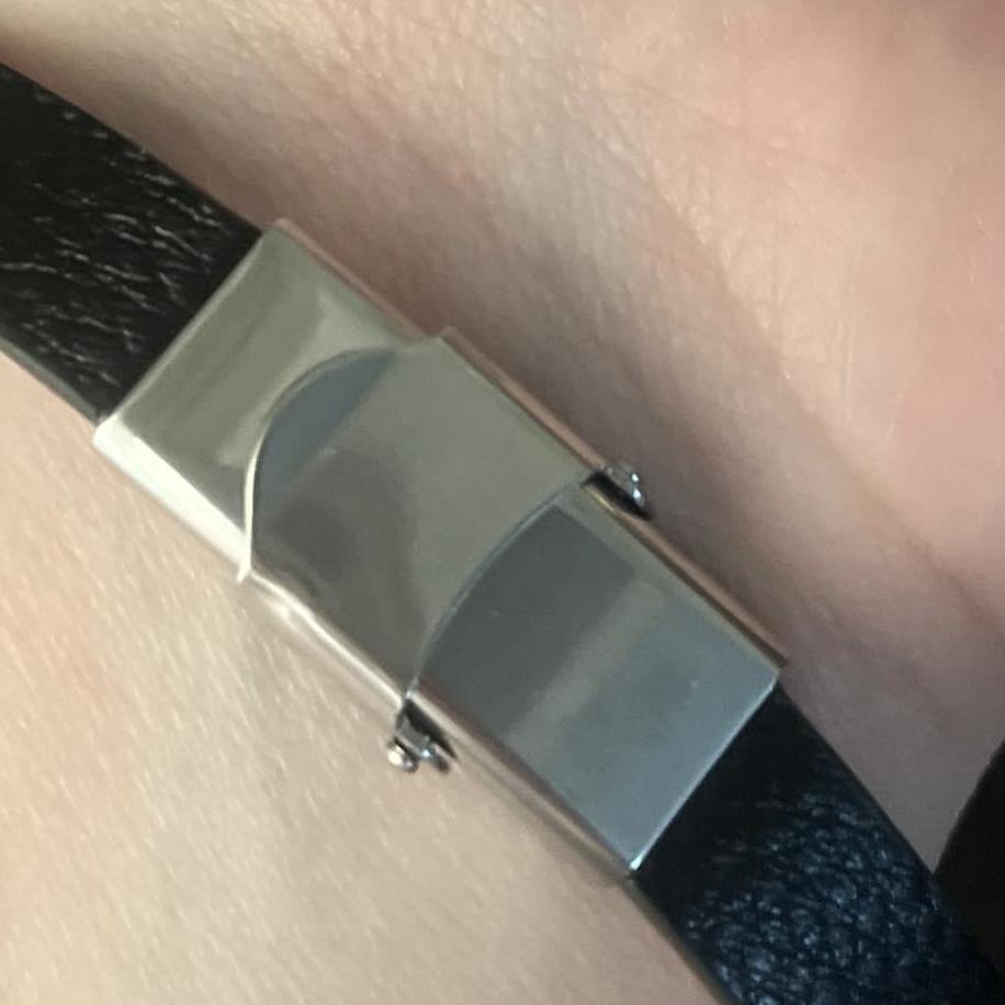 دستبند چرم با پلاک استیل و حک بارسلونا رنگ ثابت