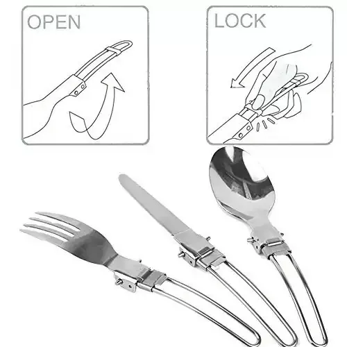 ست شامل: قاشق، چنگال، کارد وکاور نوع : تاشو جنس بدنه فلزی مقاوم و ضد زنگ تاشو - به سادگی در یک کاور به ابعاد 8 × 11 قرار می گیرد همه ما به کوهنوردی و گردش علاقه داریم ولی گاهی جمع کردن وسایلهای لازم میتواند، هم جاگیر و هم خسته کننده باشد.از این جهت میتوانیم در انتخاب وسایلمان دقت کافی را داشته باشیم. یکی از این وسایل که بسیار کم حجم می باشد، ست قاشق چنگال تاشو است که به دلیل حالت تاشو بودنش، جای بسیار کمی را آشغال میکند.جنس این سرویس از استیل محکم می باشد و دارای یک قاشق و چنگال با یک کارد می باشد.