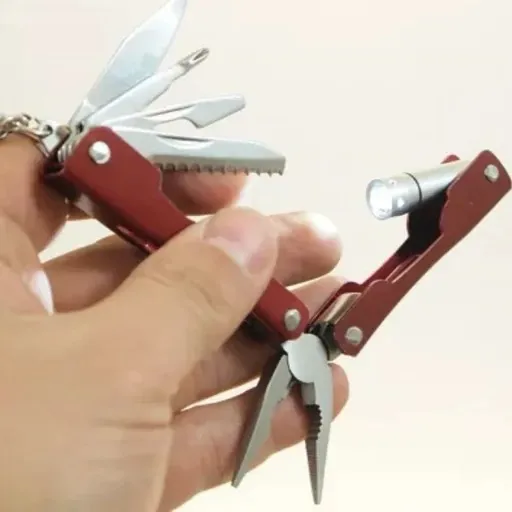 جعبه نجات شامل: - یک عدد سوت دارای محفظه ضدآب در داخل - یک عدد قطب نما - یک عدد آتش زنه - یک عدد انبردست چندکاره تاشو ( شامل چراغ قوه، پیچ گوشتی و چاقو) - یک عدد اره سیمی - یک عدد ابزار خطکشی کارت ویزیتی