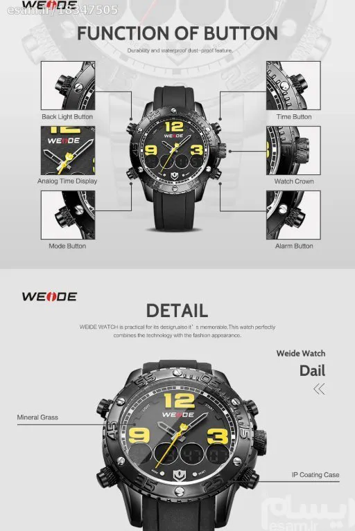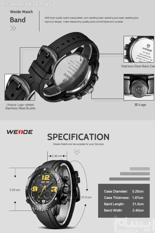 تا 3 اتمسفر ضد آب بوده و توانایی نمایش روزهای هفته و تاریخ را نیز دارد.