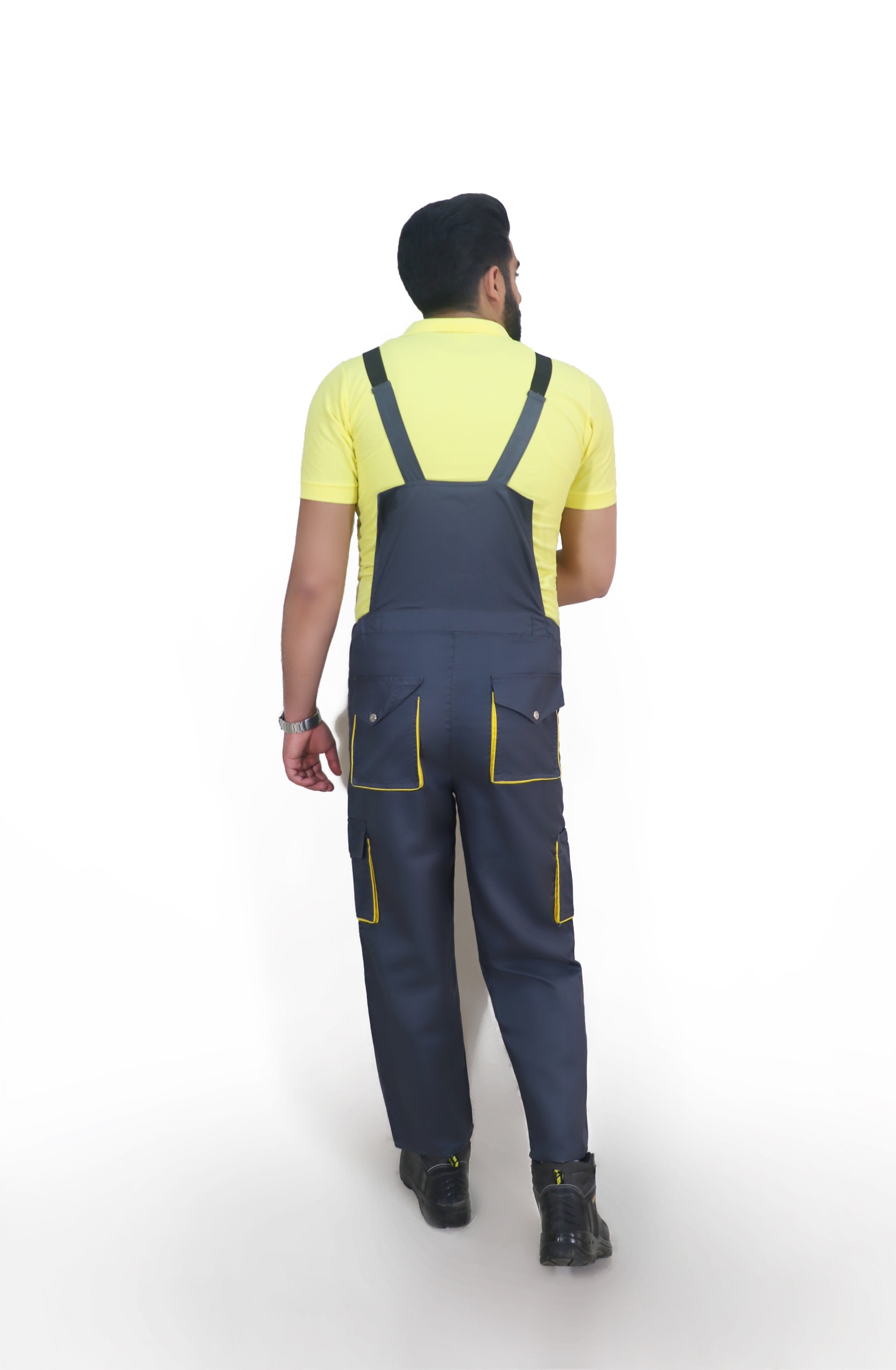 * لباسکار دوبنده سرمهای و زرد کد D2 از تولیدات ایمن صنعت، مناسب استفاده در محیطهای صنعتی و کارگاهی است.