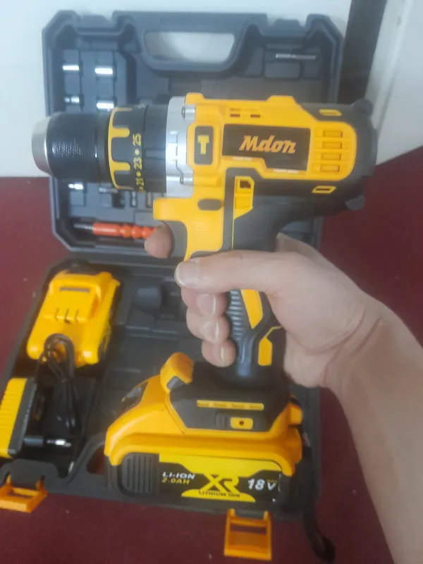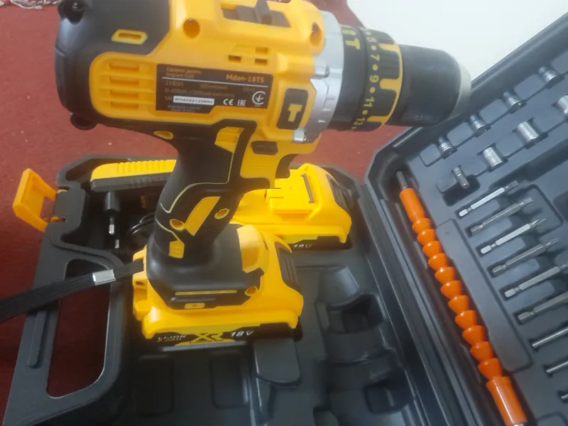 دریل شارژی 18 ولت چکشی دوباتری