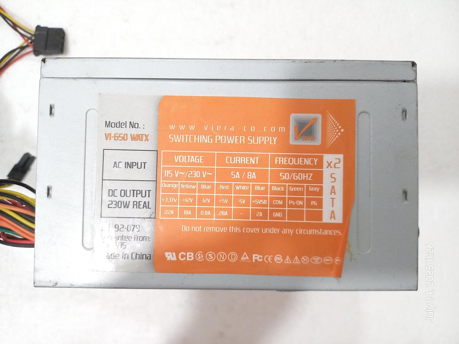 پاور Viera VI-650WATX کد 1722 یک پاور 24 پین فن کوچک میباشد که دارای 3 رابط برق IDE و 2 رابط ساتا است.