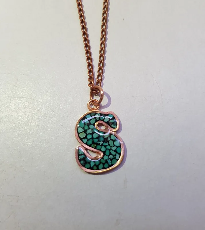 یک گردنبند مسی فیروزه کوبی شده طرح اسم s برای خوش سلیقه ها، دارای خواص درمانی مس،خواص فیروزه دفع چشم و نظر جذب انرژی مثبت،محصول فوق دارای زنجیر مسی شصت سانتی میباشد.