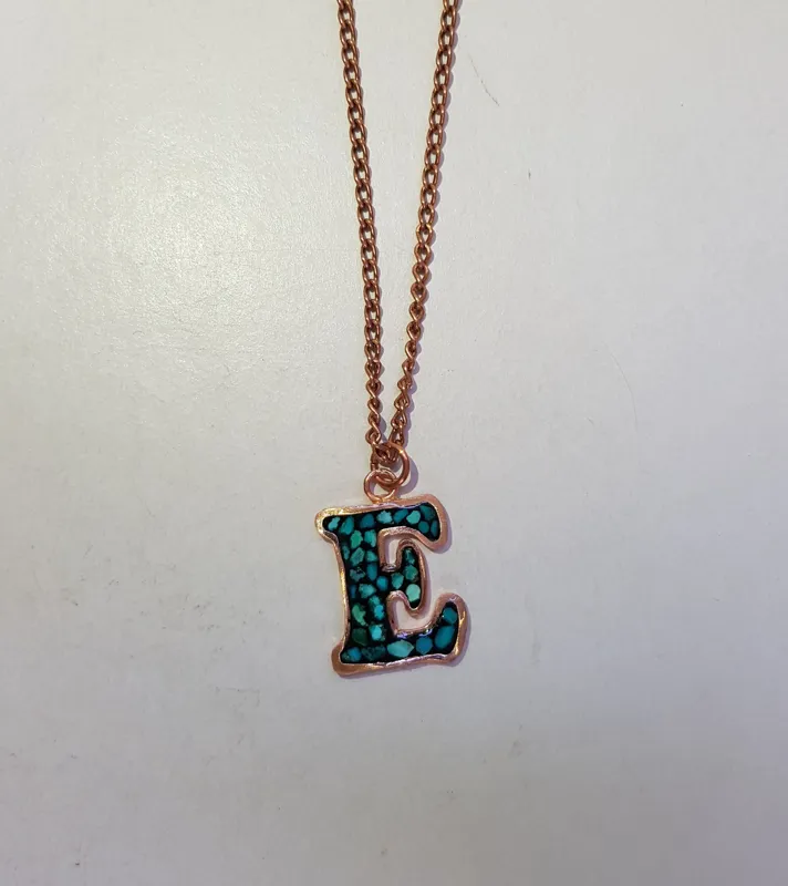 یک گردنبند مسی فیروزه کوبی شده طرح اسم E برای خوش سلیقه ها، دارای خواص درمانی مس،خواص فیروزه دفع چشم و نظر جذب انرژی مثبت،محصول فوق دارای زنجیر مسی شصت سانتی میباشد.