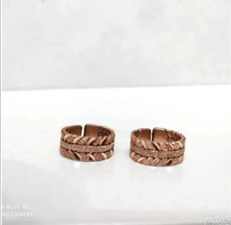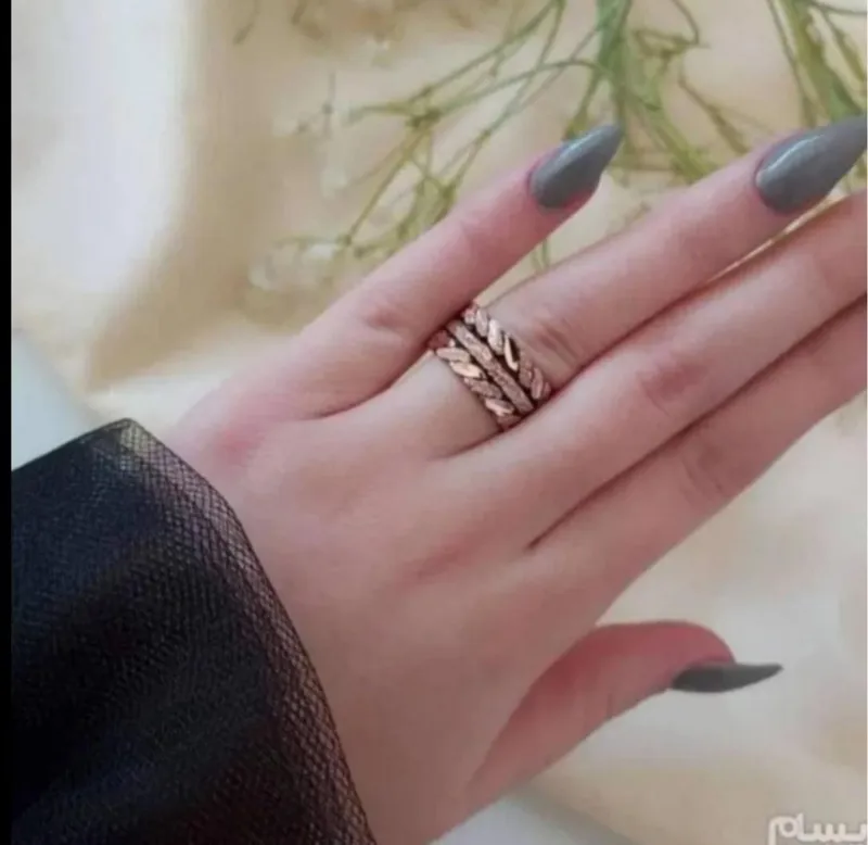 انگشتر مسی مدل سه ردیفه سیاه قلم شده تراش دار،فری سایز،پشت باز میباشد.