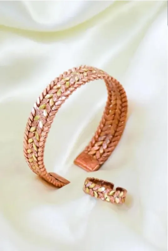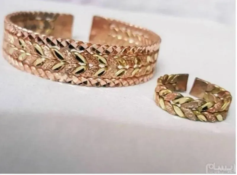 دستبند و انگشتر طرح مس و برنج،پهنا دوازده میلی متر،دستبند و انگشتر فری سایز بوده