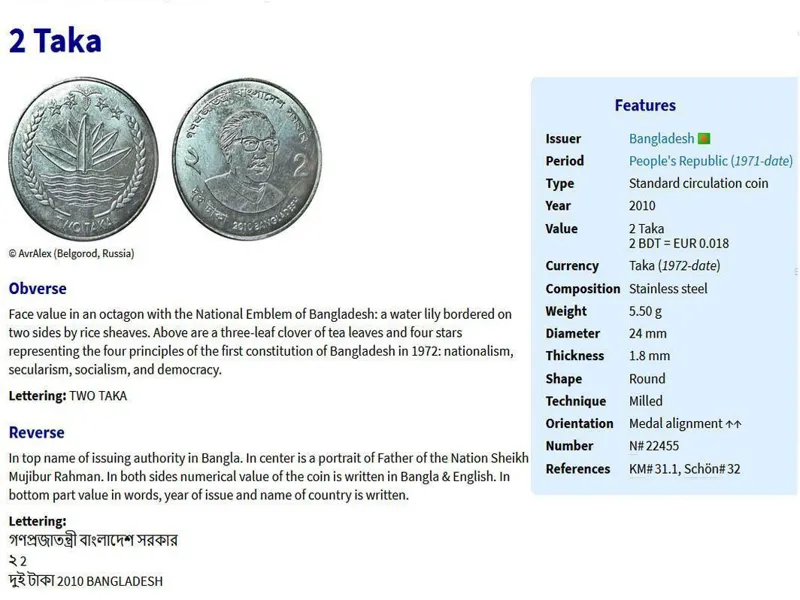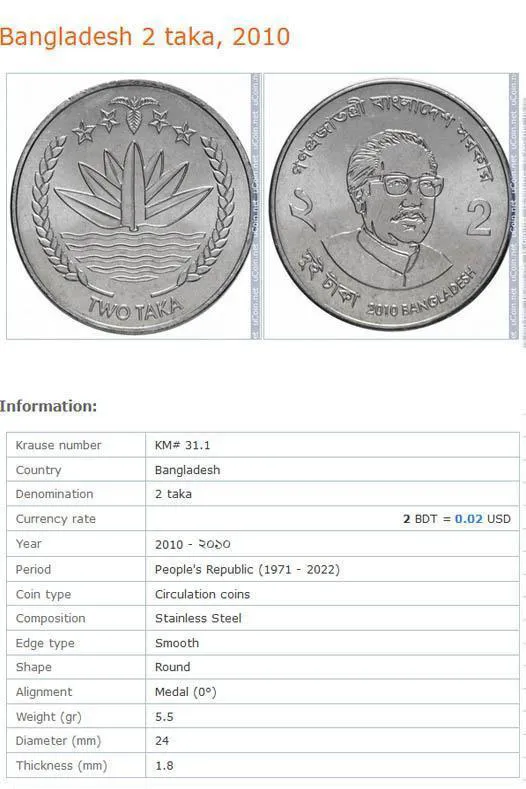 سکه 2 تاکا بنگلادش 2010 (بسیار کمیاب)