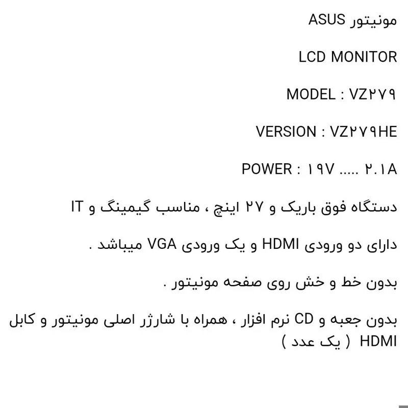 مونیتور 27 اینچ ایسوس ASUS مدل VZ279HE