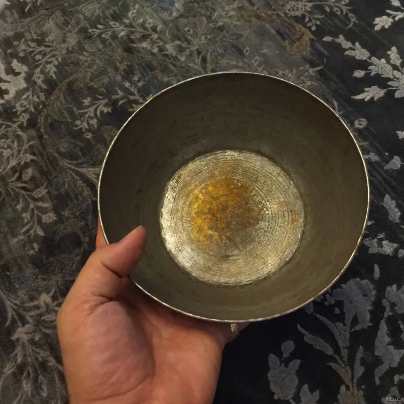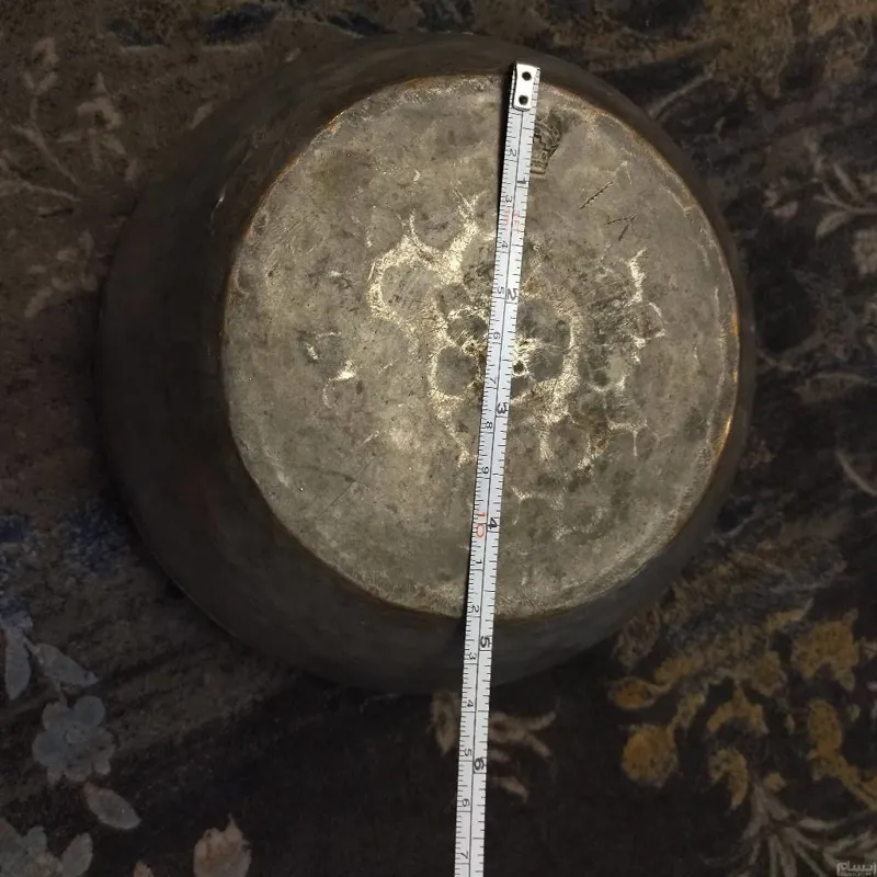 کاسه چکشی مسی قدیمی با مهر تاج پهلوی