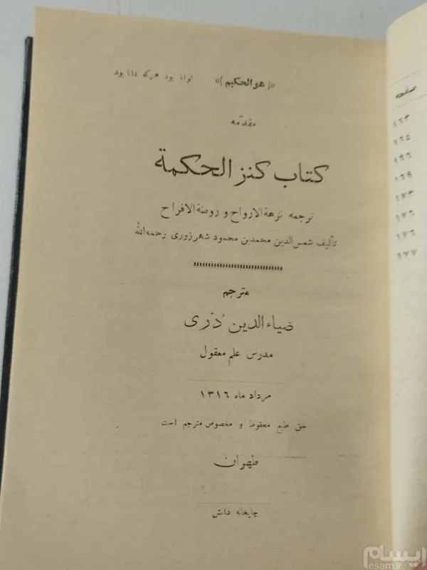 کتاب کنز الحکمة دوجلد در یک مجلد چاپ 1319