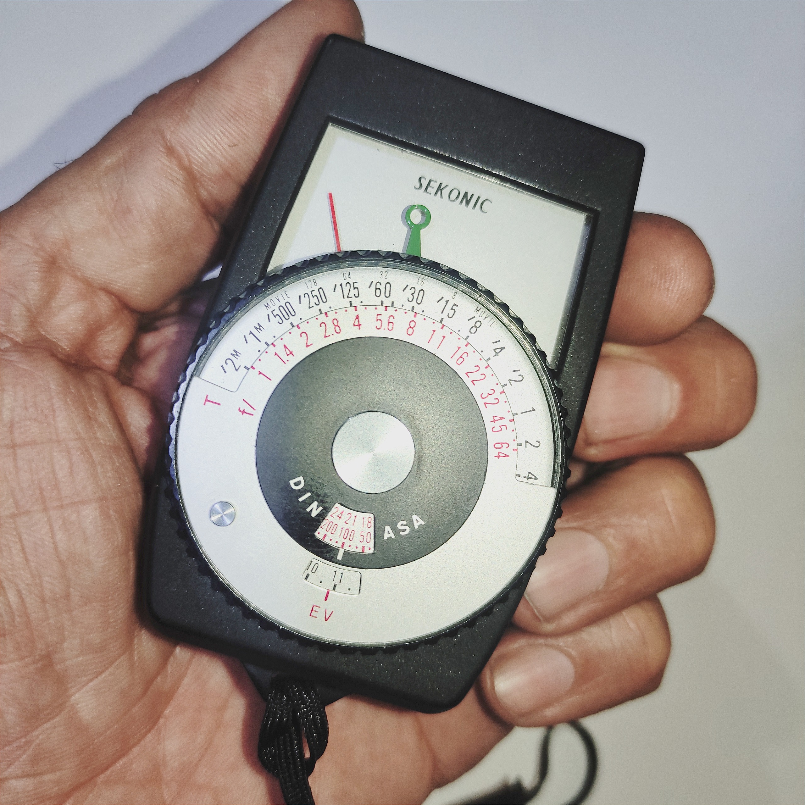 • در نهایت، ترکیبات دیافراگم و سرعت شاتر مناسب، و همچنین مقدار EV، را میتوان از روی صفحه نورسنج خواند