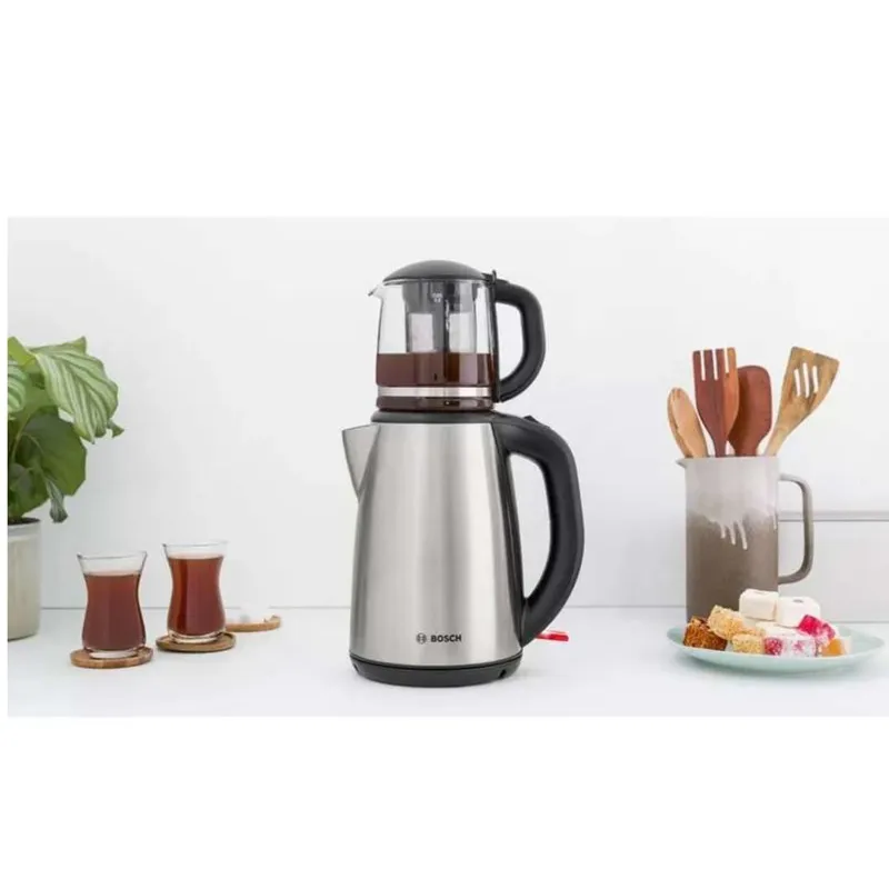 چای ساز بوش مدل TTA5603 یکی از چای سازهای استیل و روی هم برند بوش است که علاوه بر عملکرد عالی، طراحی جذابی هم دارد. وجود چای ساز برقی در آشپزخانه میتواند به خانم خانه و افراد خانواده در آماده سازی سریعتر چای کمک بسیار کند. چای سازهای برقی در مجموع دارای دو مدل روی هم و کنار هم هستند. نوع روی هم چای ساز از پرطرفدارترین مدلهاست و جای کمتری هم میگیرد. برند بوش تنها چای ساز روی هم تولید میکند و اصلا چای ساز کنار هم ندارد. اگر جایی چای ساز کنار هم بوش دیدید، قطعا تقلبی است. پس اگر شما هم چای زیاد می نوشید و میخواهید همیشه چای در دسترس باشد، یک چای ساز بوش بخرید.
