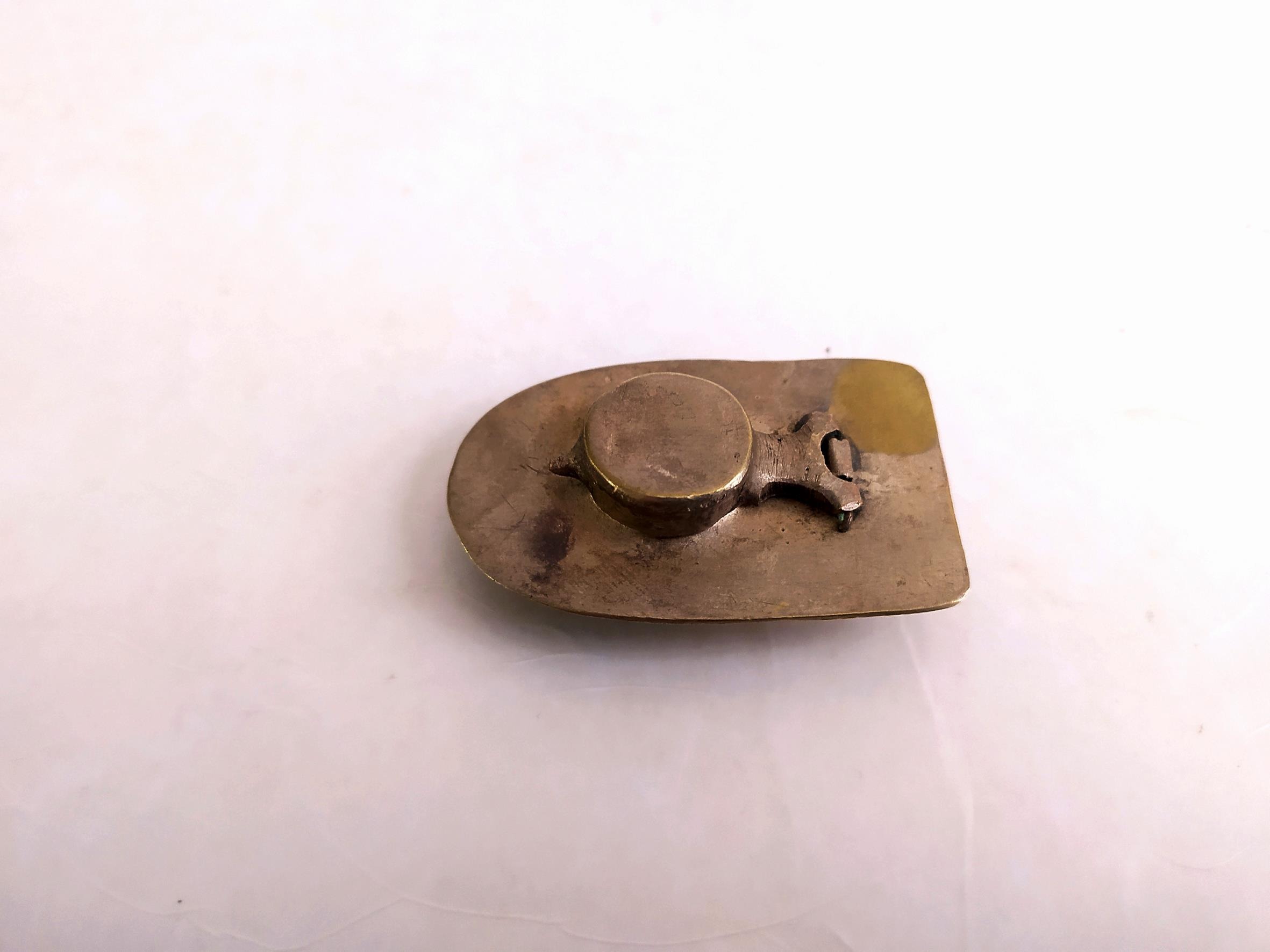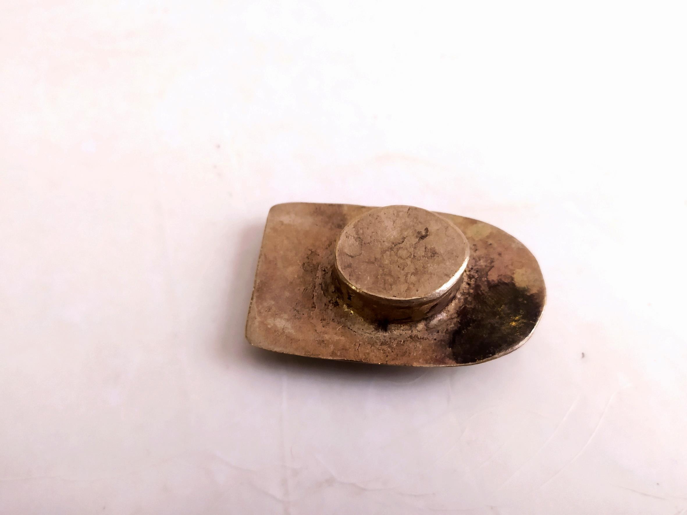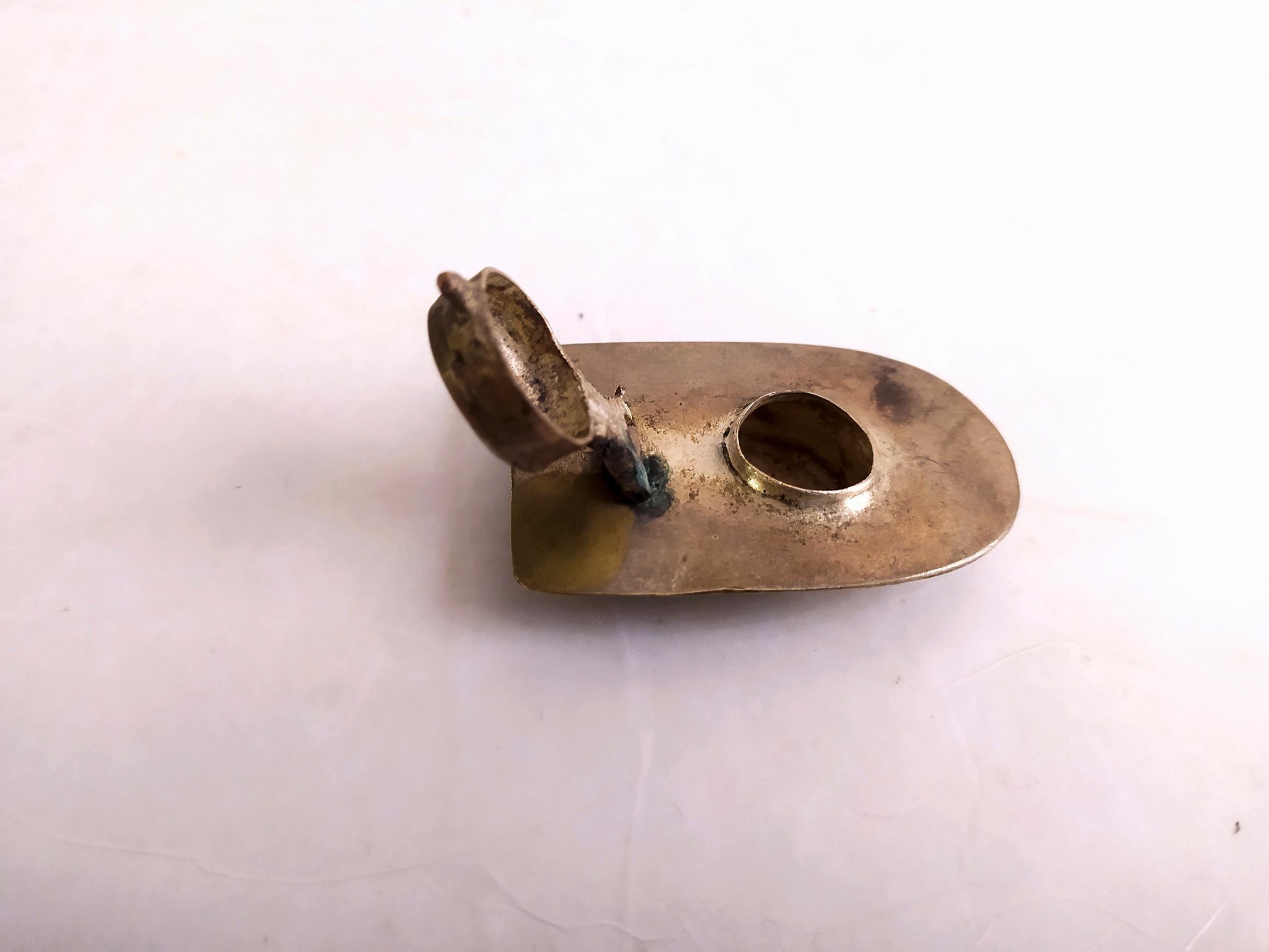 جنس برنجی و یک جای تست نقره دارد که رنگش زرد شده است