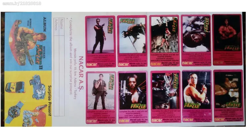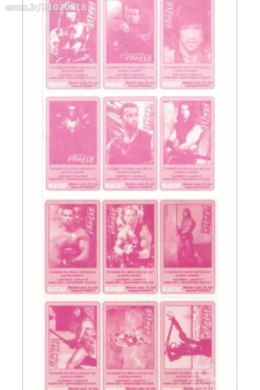 بعلاوه 22 شماره کامل آلبوم بصورت چاپ شده بر روی دو برگ کاغذ برچسب سایز A4 با کیفیت مطلوب مطابق عکس ها که خریدار محترم باید برش داده و بر روی محل خود عکس روی آلبوم بچسباند.