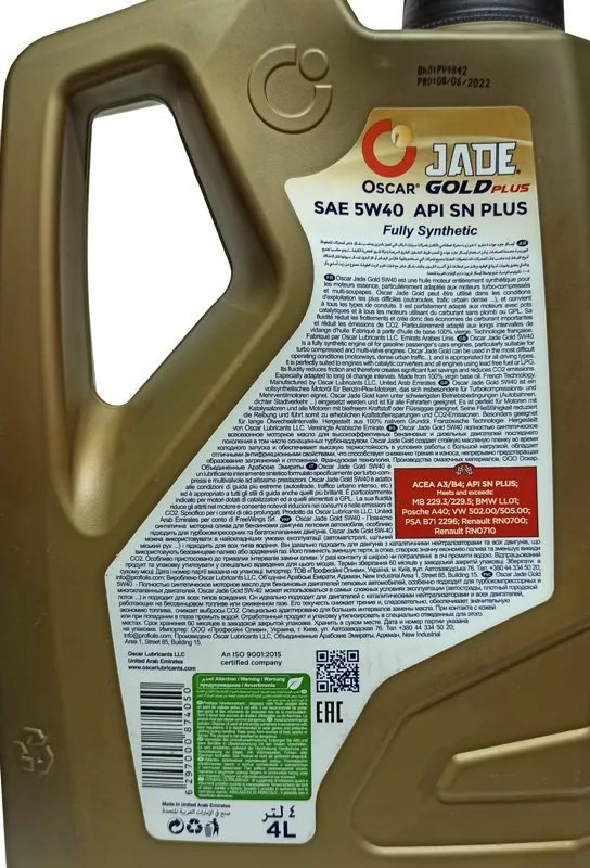 روغن موتور اسکار ساخت امارات با تکنولوژی فرانسه دارای گرانروی 5W40 دارای سطح کارایی APISNPLUS دارای تاییدیه های معتبر بینالمللی از شرکت های خودروسازی آلمانی و فرانسوی