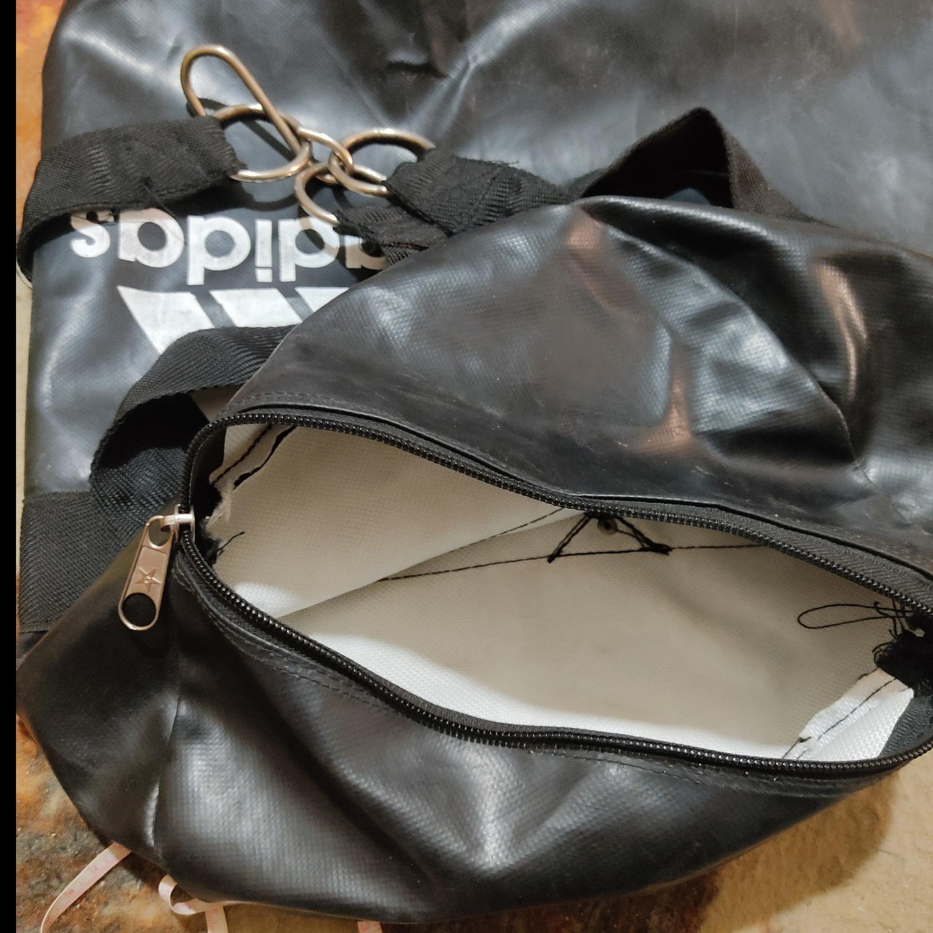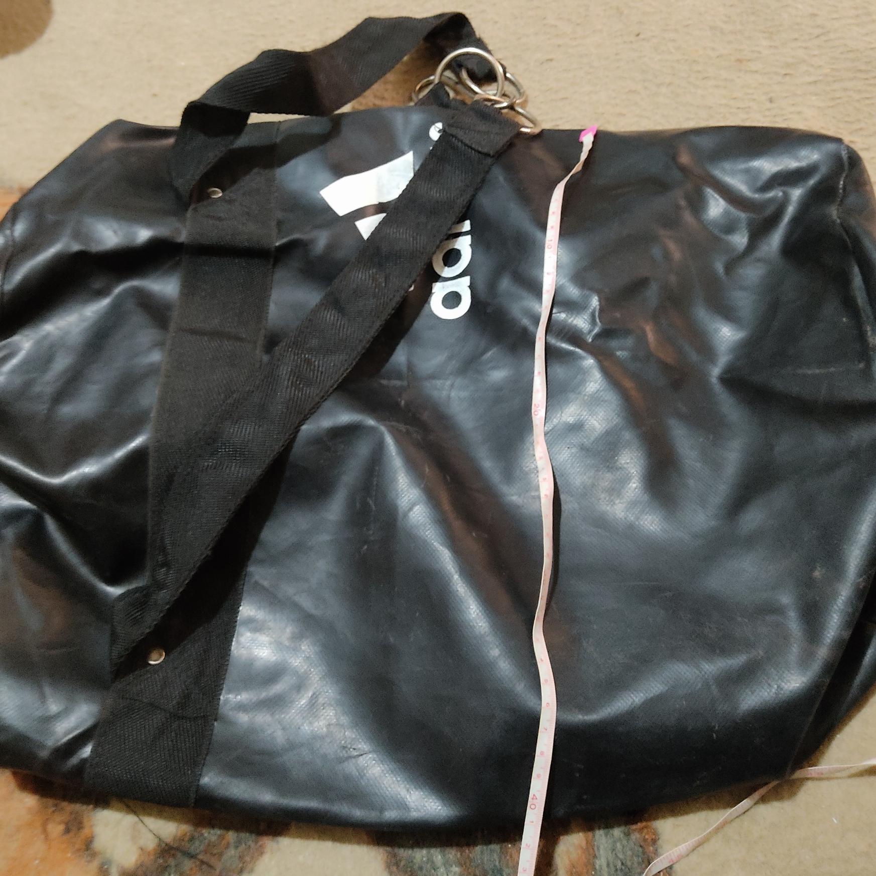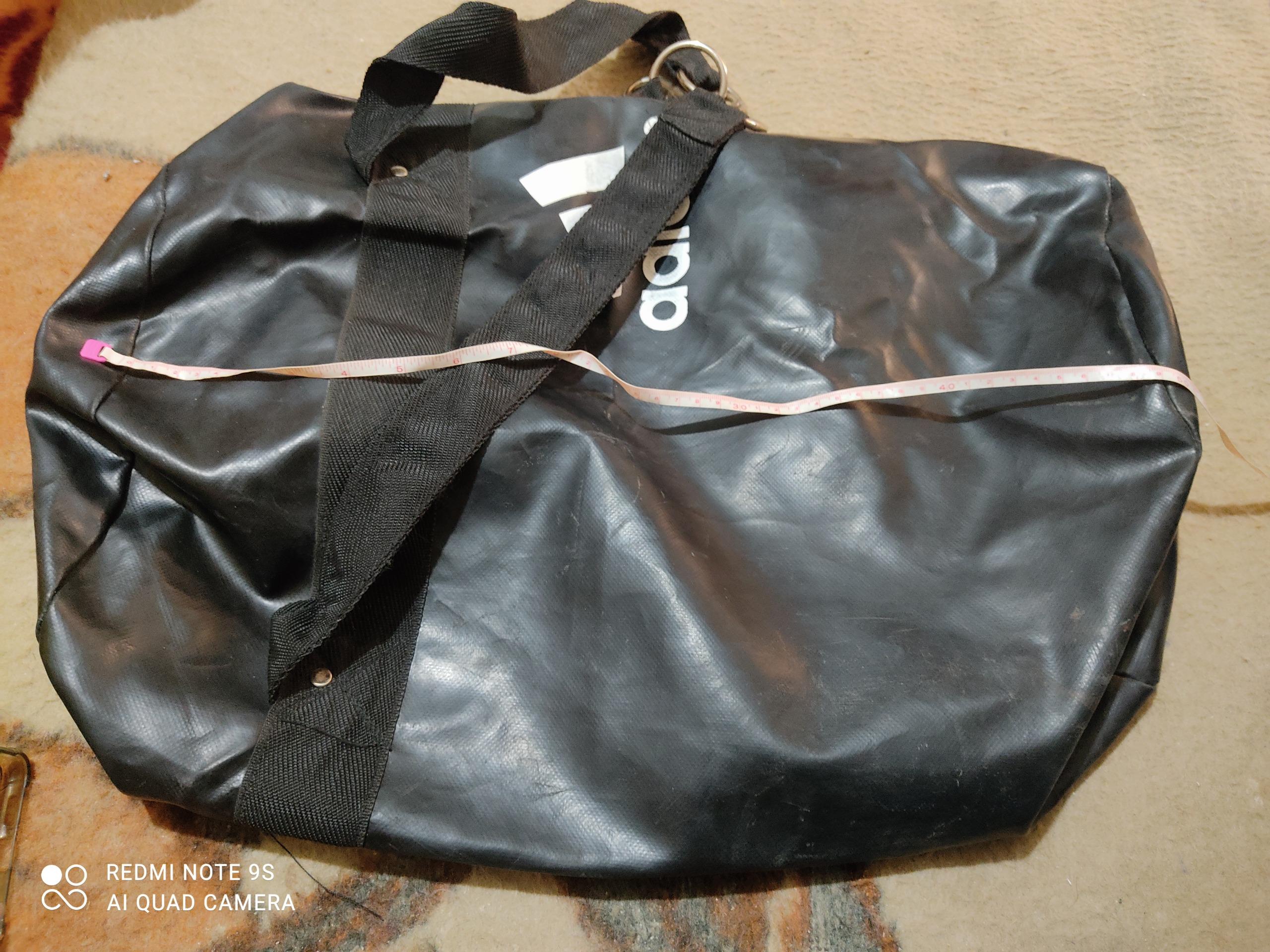 کوله لوله ای بزرگ از جنس برزنت چرم روکش شده با برزنت مقاوم مارک آدیداس.زیپ خور از بالا...دارای حلقه و بند قوی و محکم...بسیار جادار...بسیار مقاوم در حد کیسه بکس .استفاده نشده ولی چون بیرون سلفون بوده به عنوان در حد نو گذاشتم.ابعاد کوله به این شکل هست