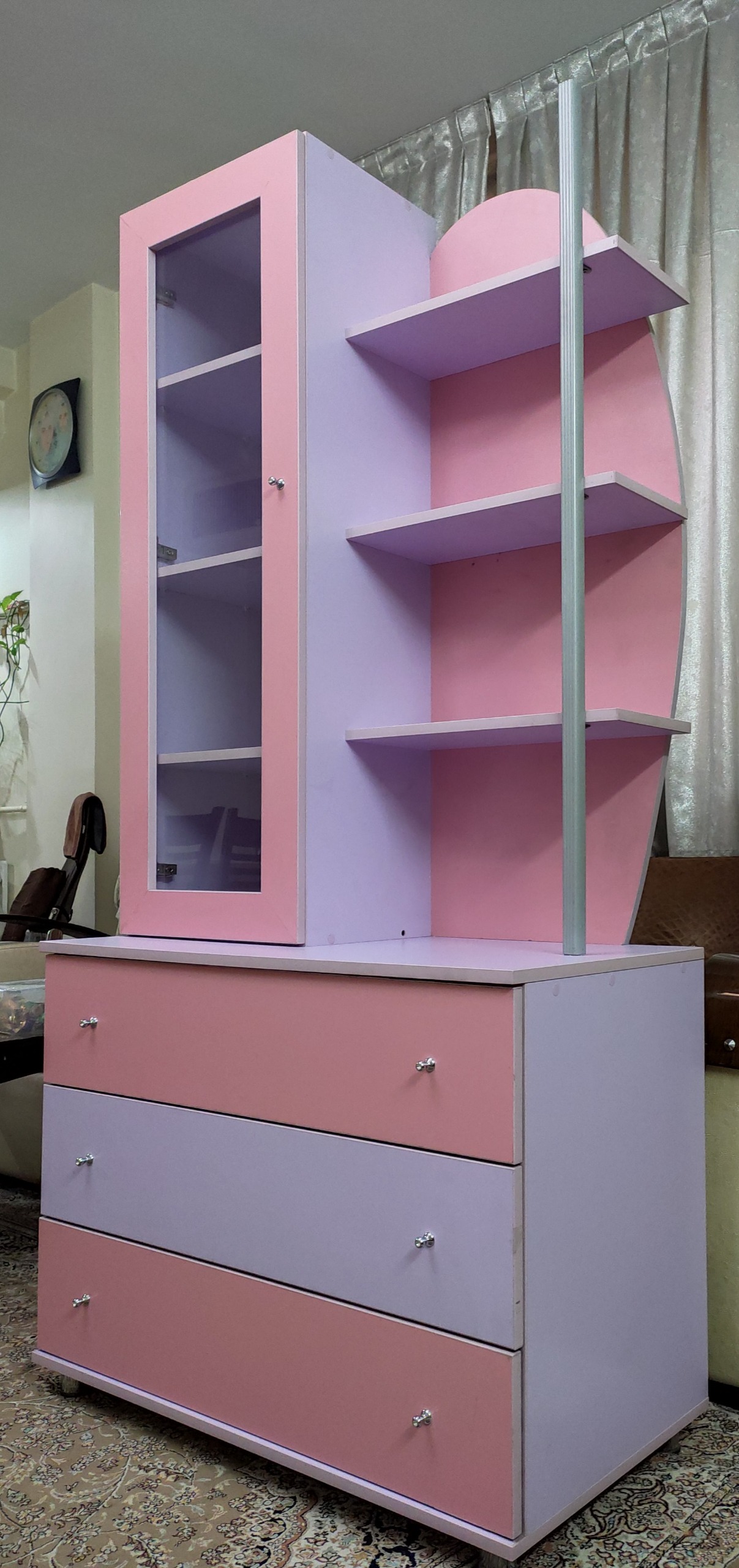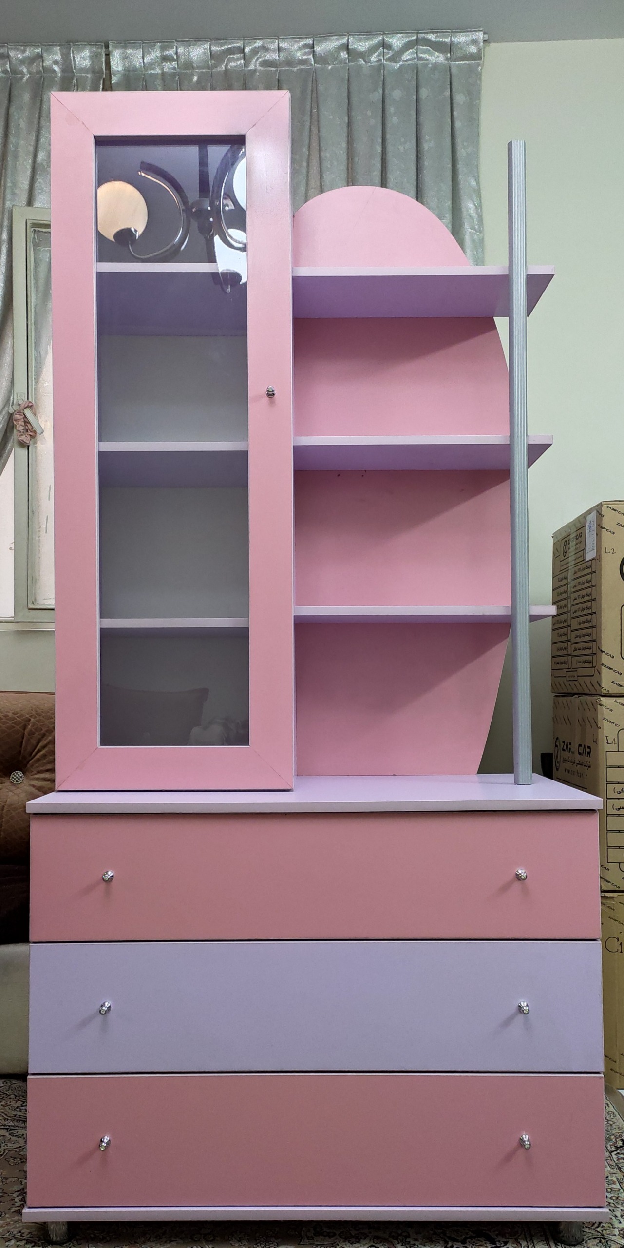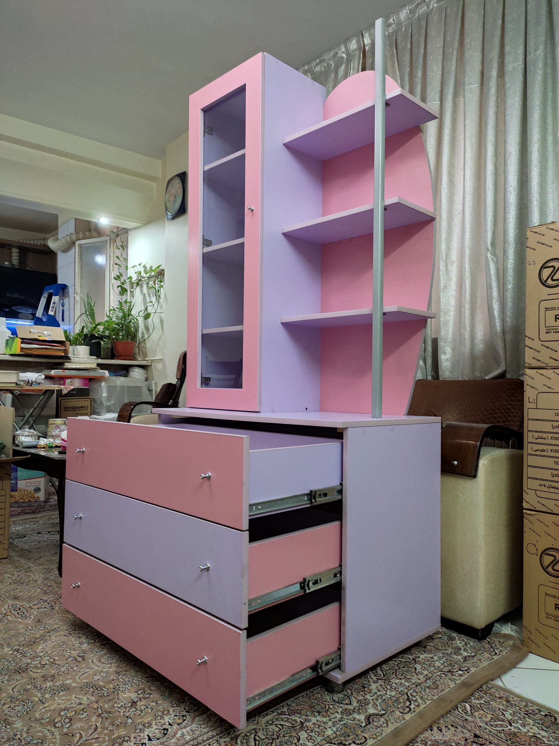 ویترینی که کتابخانه و دراور هم دارد