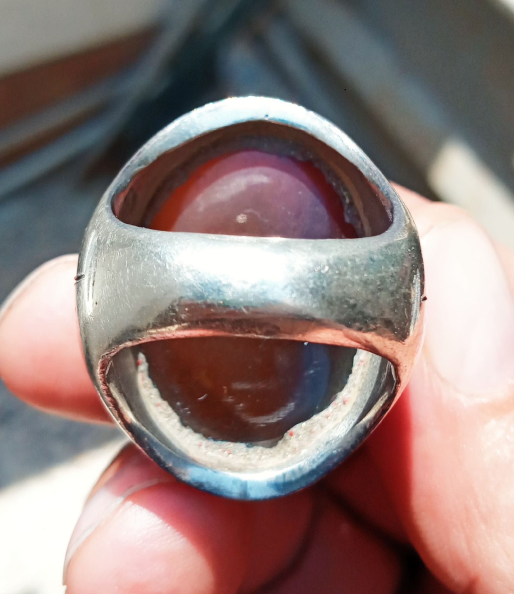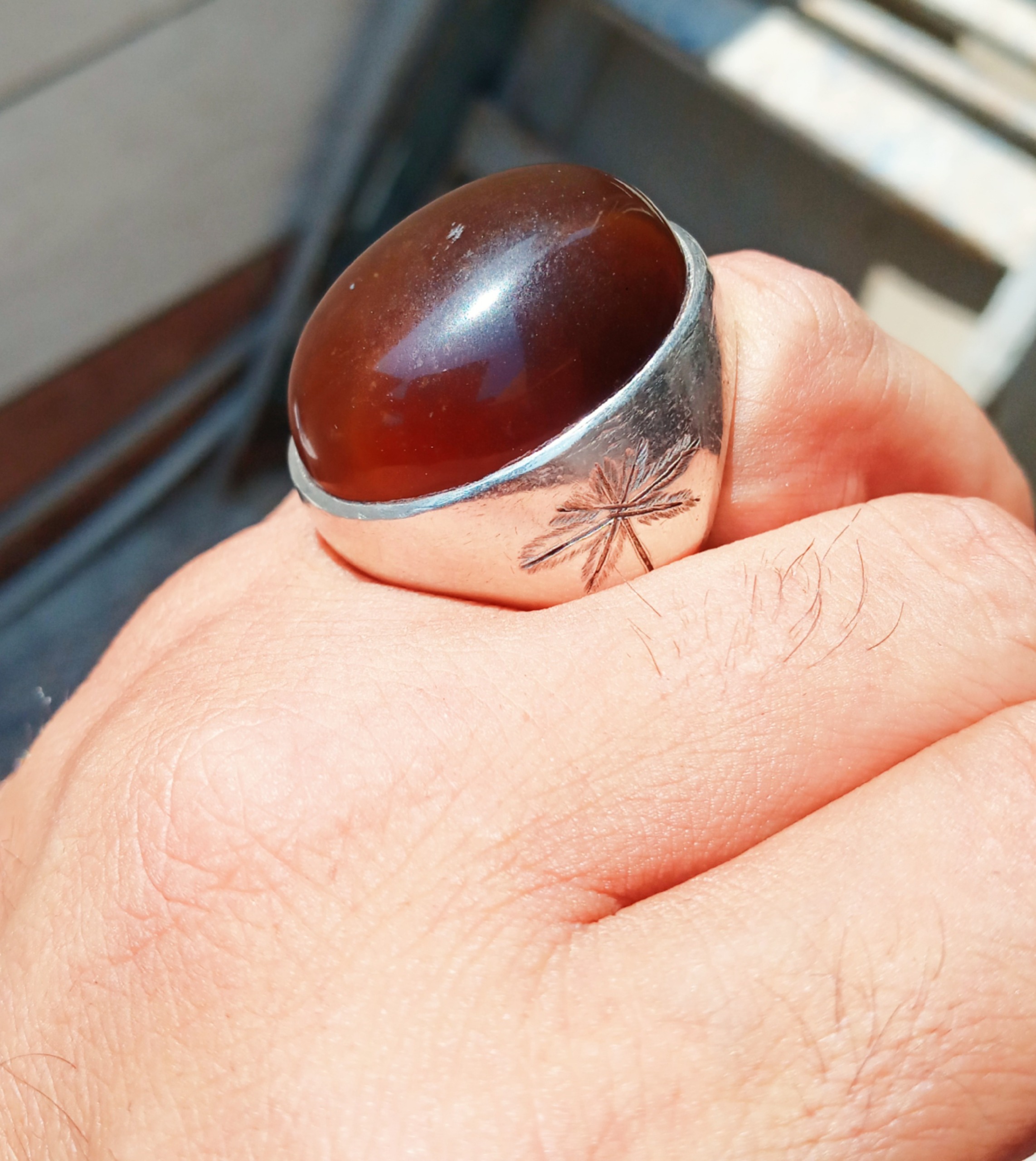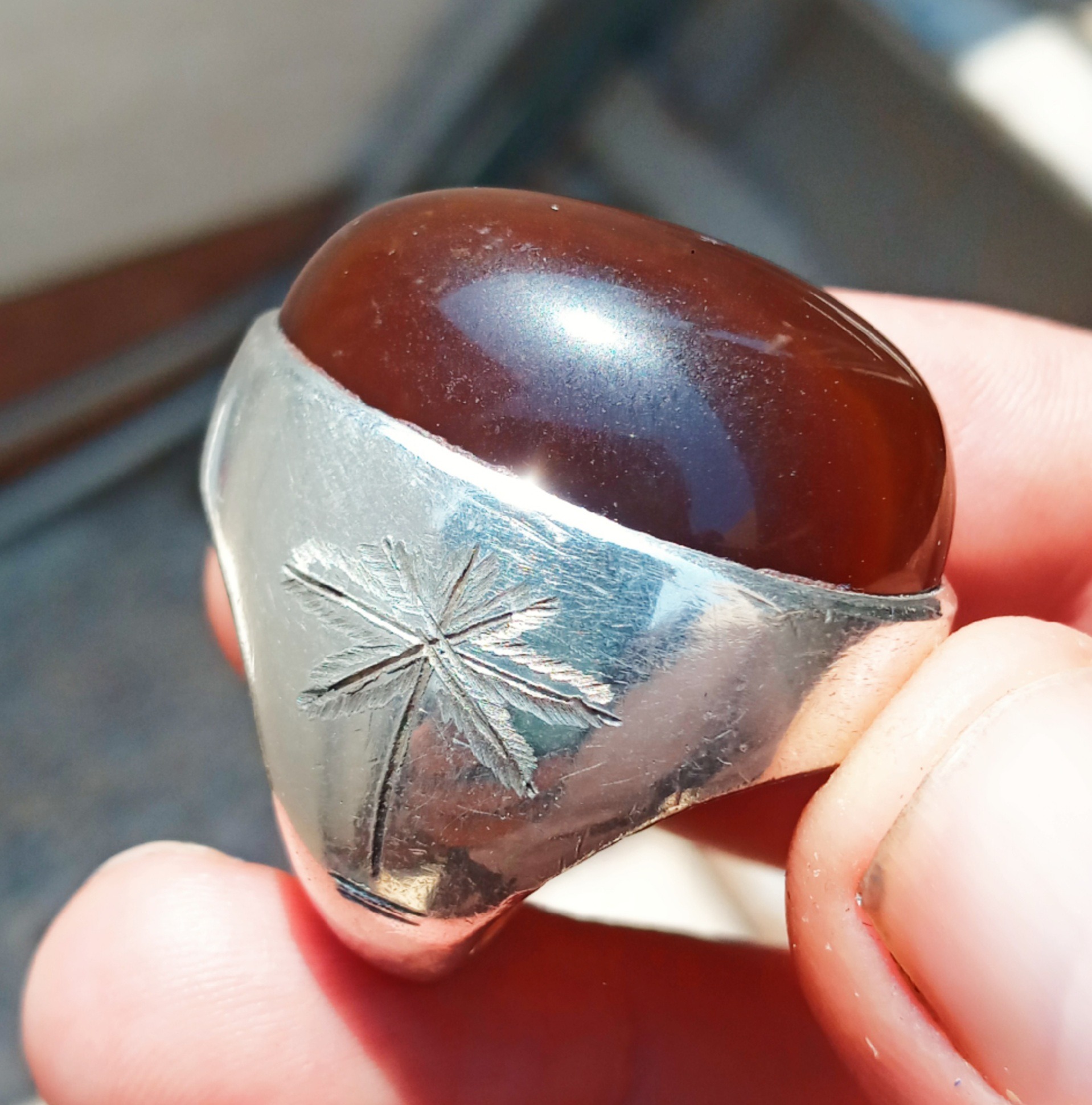 انگشتر خاص و زیبا و شاهکار جزع یمنی اصل و طبیعی صد در صد یمنی سنگ درشت خوشدست و کهنه خوش طبع و پر انرژی با رکاب سنگین وزن و آنتیک تمام نقره عیار بالا و تمام دستساز با وزن کار نزدیک به 50 گرم