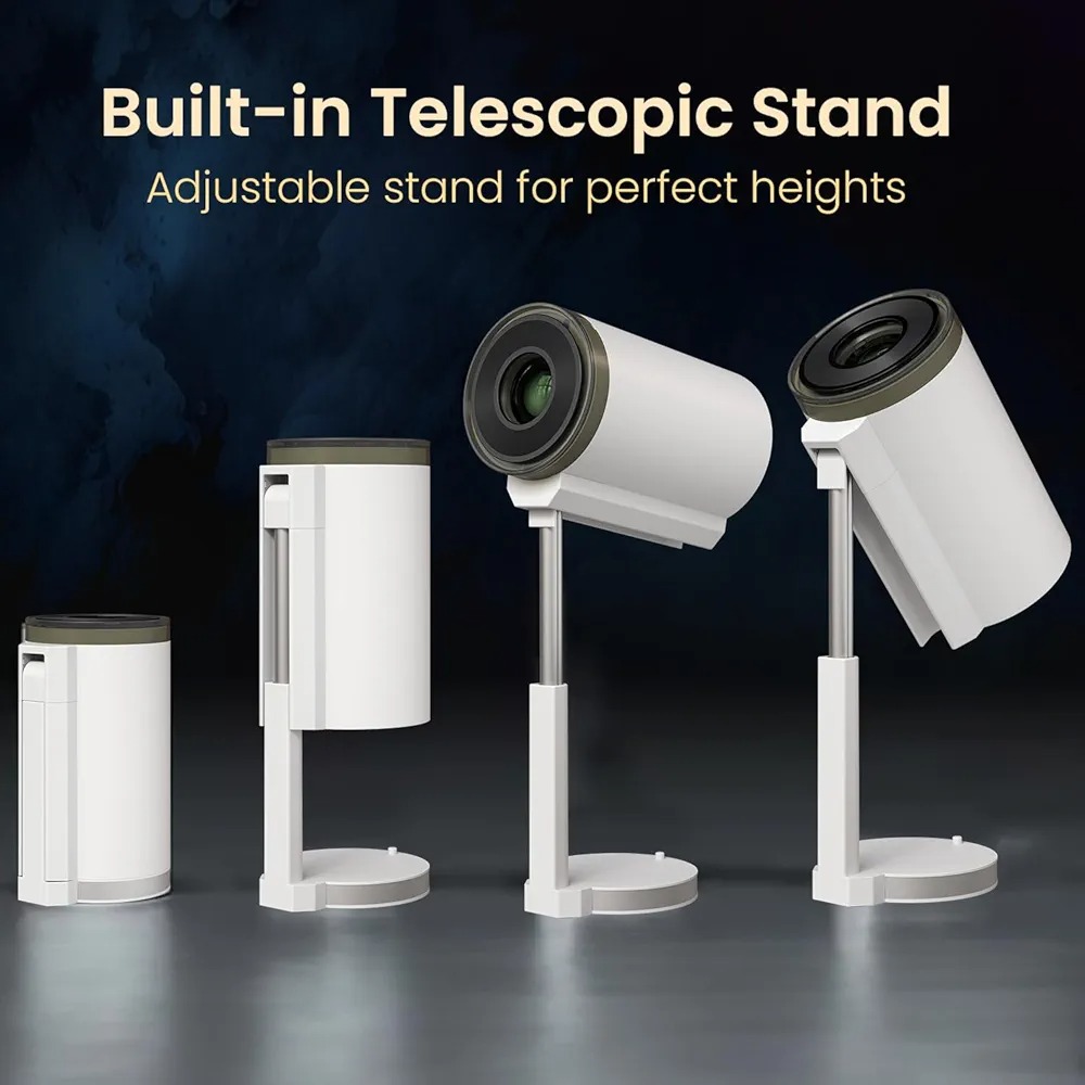 پروژکتور قابل تنظیم شیب با پایه تلسکوپی داخلی هر بار به زاویه دید کامل برسید. پایه تلسکوپی یکپارچه و طراحی شیب قابل تنظیم به شما امکان میدهد تا به سرعت صفحه نمایش را برای وضوح و راحتی بهینه قرار دهید - بدون نیاز به سه پایه یا لوازم جانبی اضافی.
