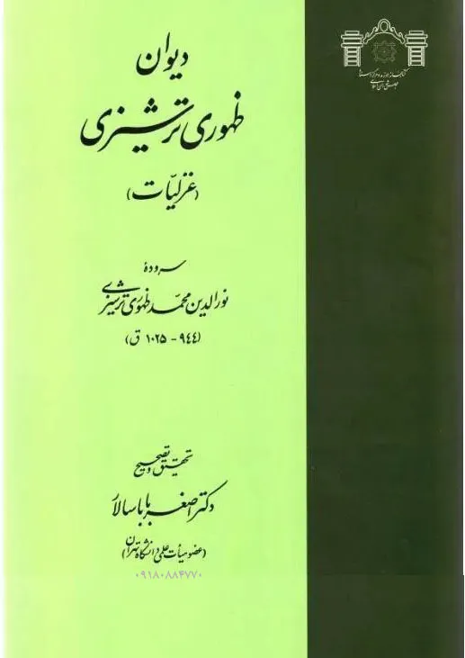 دیوان غزلیات «ظهوری ترشیزی»، از شاعران نامور قرن های دهم و یازدهم ه. ق و از پیشگامان سبک هندی است. او در سال 988 ه. ق به هند رفت و به دربار «نظامشاهیان» پیوست و تقرب یافت. غزلیات او، هم به لحاظ ساختار زبانی(ترکیب سازی های نو) و هم به حیث ساختار بیانی(تخیل آفرینی و صور بلاغی تازه)، قابل توجه است. «ظهوری» در همه اشکال شعر فارسی، به ویژه ساقی نامه، کم نظیر بوده و ابتکارات او در قالب غزل، هم به لحاظ ترکیب سازی و هم از جهت صناعات ادبی، شعرش را از دیگر هم عصرانش متمایز کرده است.