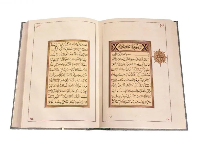 بجهت حفظ آکبند ماندن مصحف ، حتی عکسها از نسخه دیگری برداشته شده است و کتاب مصحف اصلا باز نشده است