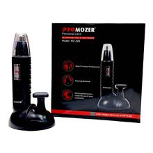 مو زن گوش و بینی پرو موز PRO MOZER 209مجموعه ای کوچک و کم حجم اما کامل و کاربردی برای آقایان است. بدنه ی دستگاه ظاهری شیک و زیبا به آن داده است. تیغه های دستگاه از جنس استیل ضد زنگ و با بهترین کارایی هستند. دکمه روشن و خاموش دستگاه بر روی بدنه قرار دارد. با فشار آن به سمت بالا دستگاه روشن می شود، جهت کارکرد دقیق تر یک چراغ LED نیز روی سری قرار دارد.