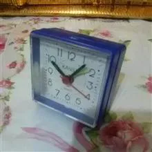 ساعت رومیزی زنگی قدیمی .شکل و رنگ طبق تصاویر.سالم و دقیق .باتری قلمی یکی میخوره.فقط روی شیشه جلوی ساعت دست چپ کمی حالت سوختگی و آب شدگی داره که زیاد مشهود نیست.