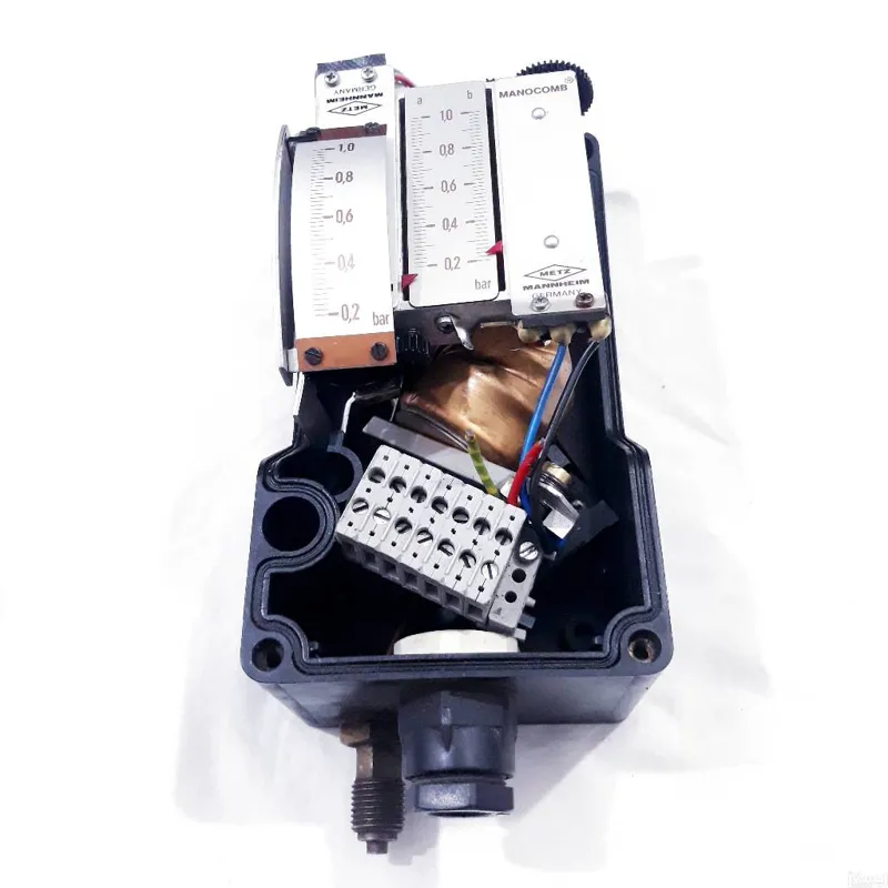 پرشر سوئیچ مدل MANOCOMB IP65/2KA/MG متز(Metz Pressure Switch)،  سوئیچ فشاری است که در صنعت کاربرد بسیار زیادی داشته و قادر است تنظیم فشار و همچنین جلوگیری از افزایش فشار سیال مورد نظر را بر عهده بگیرد و به همین دلیل جزو قطعات پر کاربرد در محیط های تحت فشار محسوب می شود پرشر سوئیچ متز ساخت کشور آلمان بوده و از کیفیت بسیار بالایی برخوردار می باشد