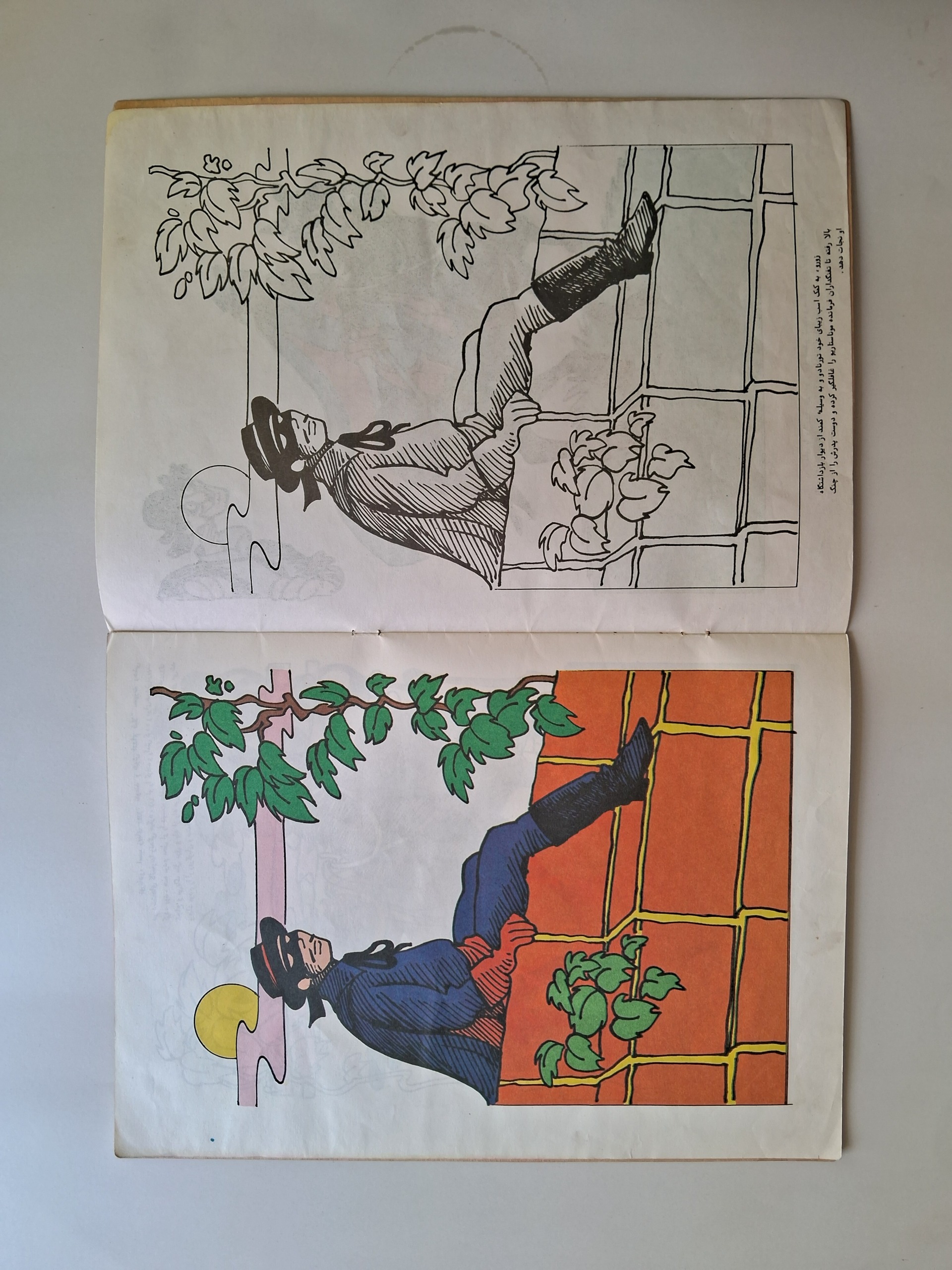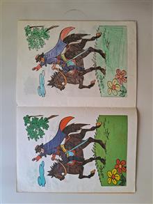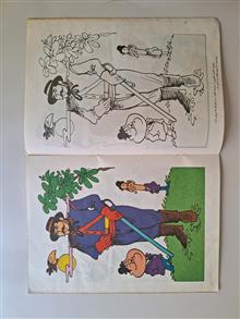 صفحات کتاب کامل، بدون پارگی و آب خوردگی هستند ، دو صفحه از نقاشی های کتاب با مداد رنگی ، رنگ شده اند که در تصویر پنجم نمونه آن را می توانید مشاهده بفرمایید.