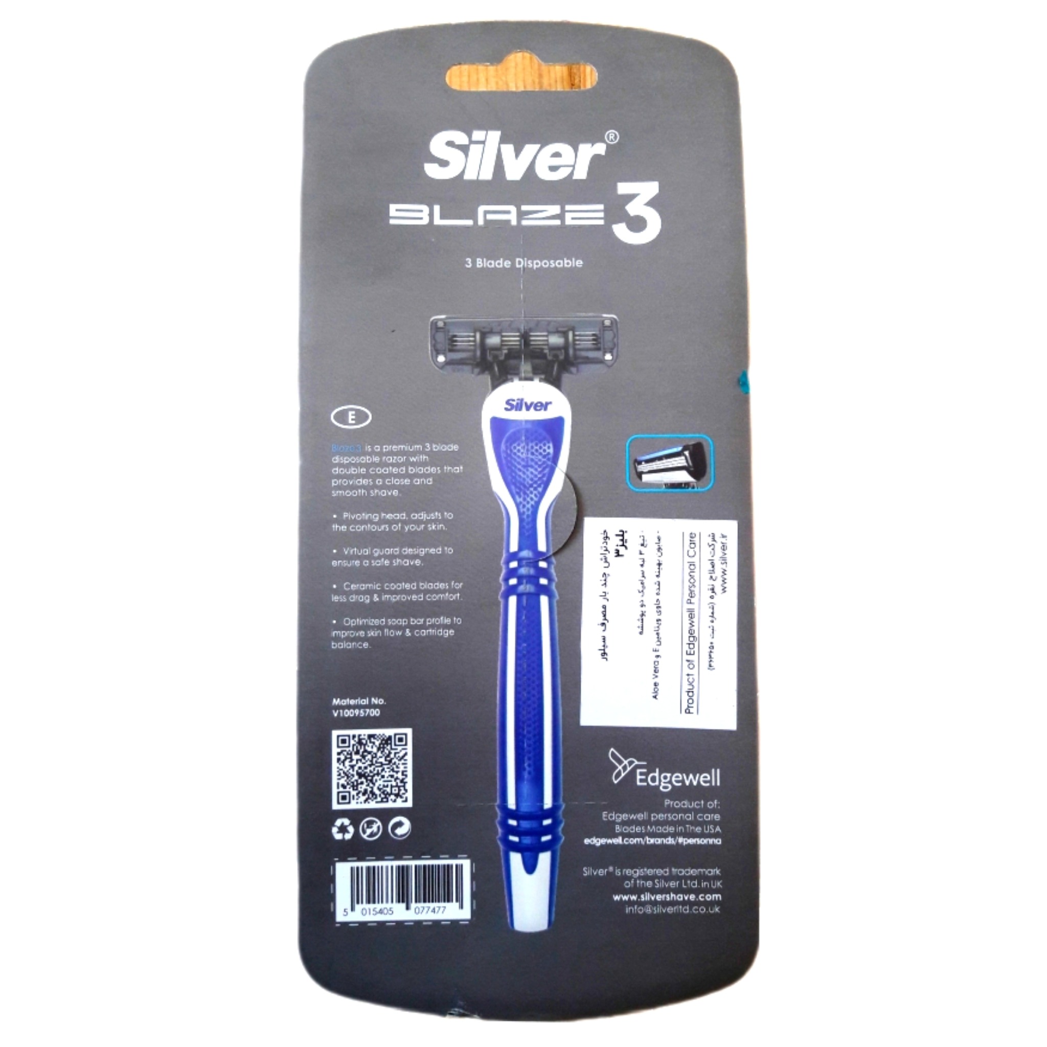 خودتراش مدل «Blaze3» از برند «سیلور» (Silver) ویژهی استفاده آقایان است. سیلور دارای سه تیغه دوطرفه است که همگی از جنس استیل ضدزنگ و کاملا ضدآب هستند و در برخورد با آب، تغییررنگ نمیدهند. سری انعطافپذیر سیلور به اصلاحی نرم و آسان کمک زیادی میکند. خودتراش سیلور یک نوار ژلی و صابونی دارد که از بریدهشدن پوست درحین اصلاح جلوگیری میکند و کاربردی مانند صابون دارد؛ به این ترتیب که پوست را لیز میکند و به اصلاحی نرم، بینقص و سریع منجر میشود. سیلور دارای صافکننده است که بیشتر برای خط ریش کاربرد دارد و برای شکلدادن به کار میرود. خودتراش سیلور درپوشی بیرنگ از جنس پلاستیک دارد که برای ایمنی بیشتر روی آن قرار داده شدهاست. دسته سیلور بسیار خوشدست و ارگونومیک است. سه تیغه سیلور دوطرفه هستند و برای اصلاح کل صورت و حتی پشت گردن طراحی شدهاند. خودتراش مدل Blaze3 از برند سیلور تکی است و تیغههای تیز و برندهی آن در اصلاحی بینقص تاثیرگذار خواهند بود