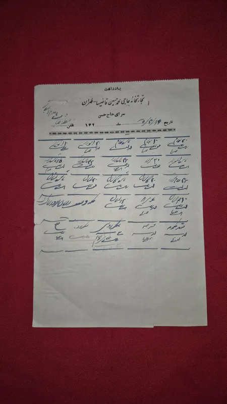 دو برگ از حساب تجارتخانه حاجی محمدحسین قاضیها طهران