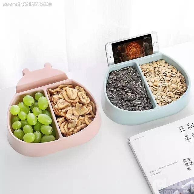 .این ظرف فوق العاده دوسمت مجزا دارد و در هر سمت شما میتوانید حجم زیادی از تنقلات را جای دهید و لذت ببرید.استند این ظرف فوق العاده برای انواع گوشی و تبلت مناسب است و شما با هردستگاهب میتوانید با این محصول لحظاتی دلنشین و راحت را تجربه کنید.