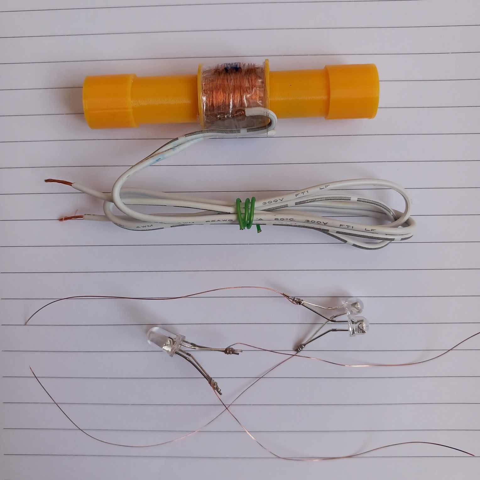 با تکان دادن این مولد برق آهنربا داخل سیم پیچ حرکت کرده و ال ای دی را روشن میکند.