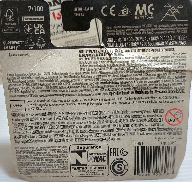 ماکت فلزی جیپ گلادیاتور،مچ باکس ساخت تایلند،آکبند