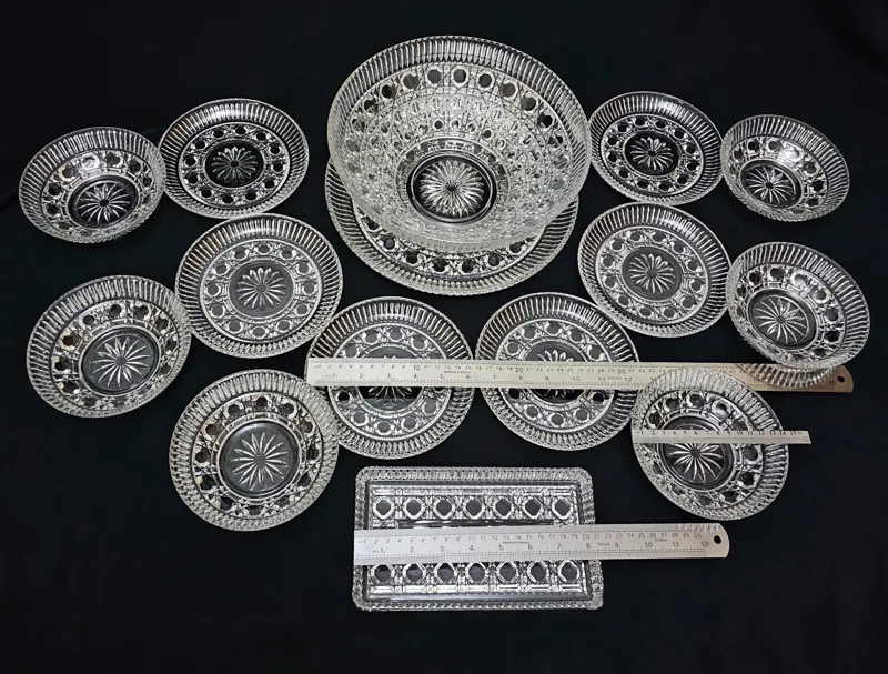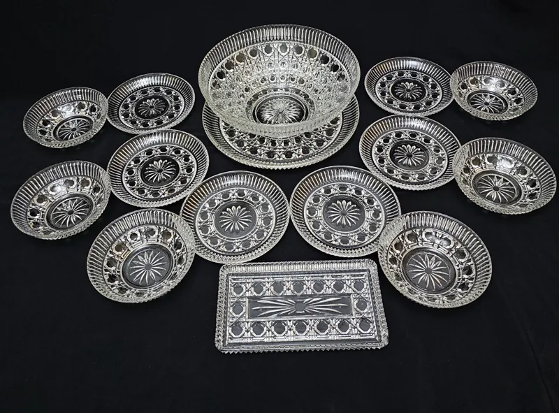سرویس کریستال بینظیر وکمیاب فوق العاده زیباتر ازتصویر ودرخشان معروف به کریستال آمریکایی؛ 14پارچه شامل:یک عدد کاسه 6عدد پیاله،یک عدد دیس گرد و6عدد پیش دستی میوه خوری همگی کاملا سالم ( کاسه یک قسمت ساییدگی داره که فقط با دست کشیدن مشخص میشه جهت اطمینان درخرید