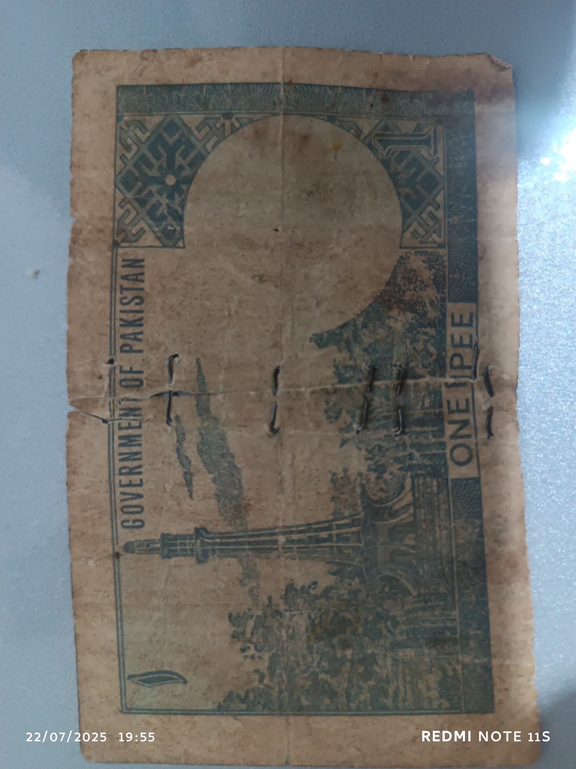 یک عدد اسکناس 1روپیه پاکستان قدیمی به فروش می رسد