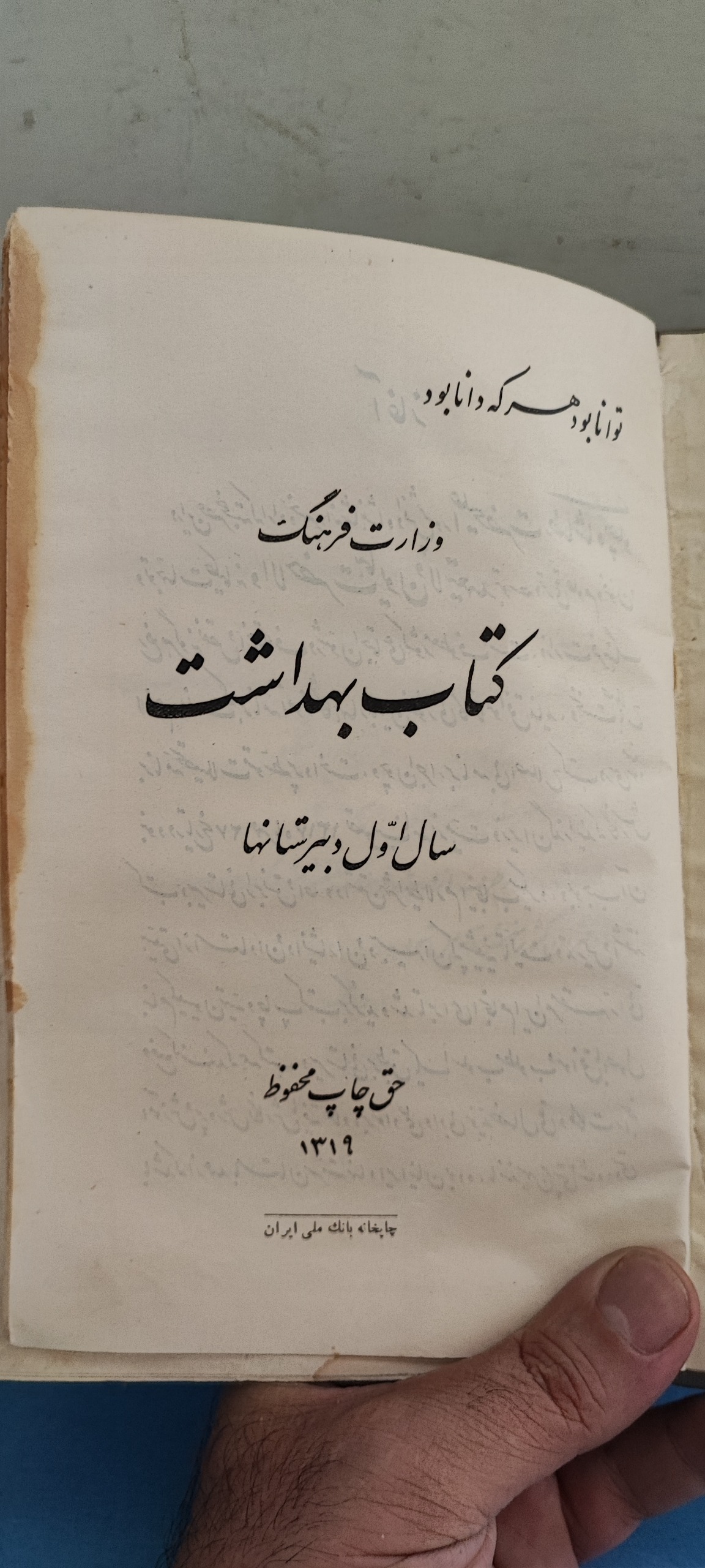 کتاب بهداشت سال اول دبیرستانها، چاپ 1319
