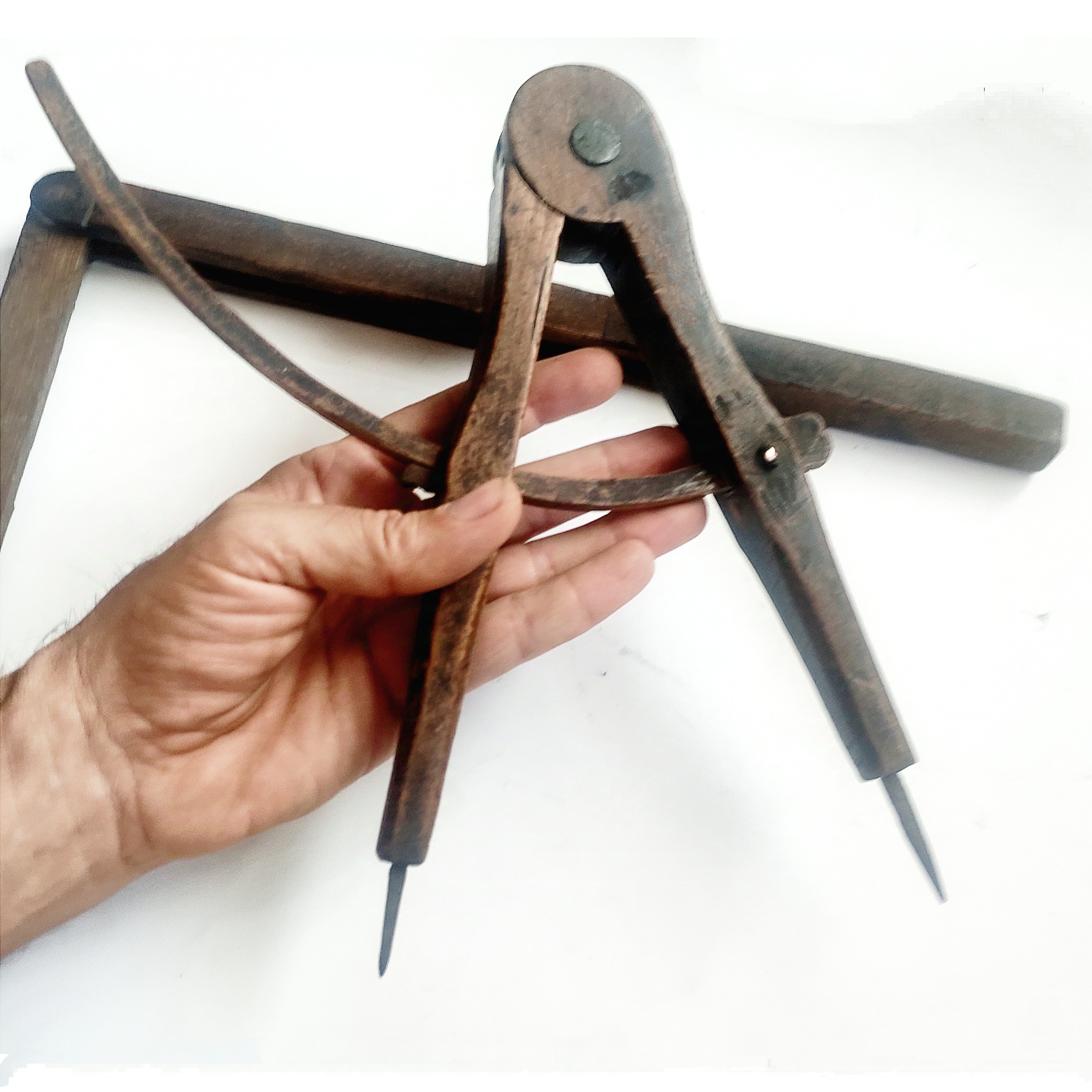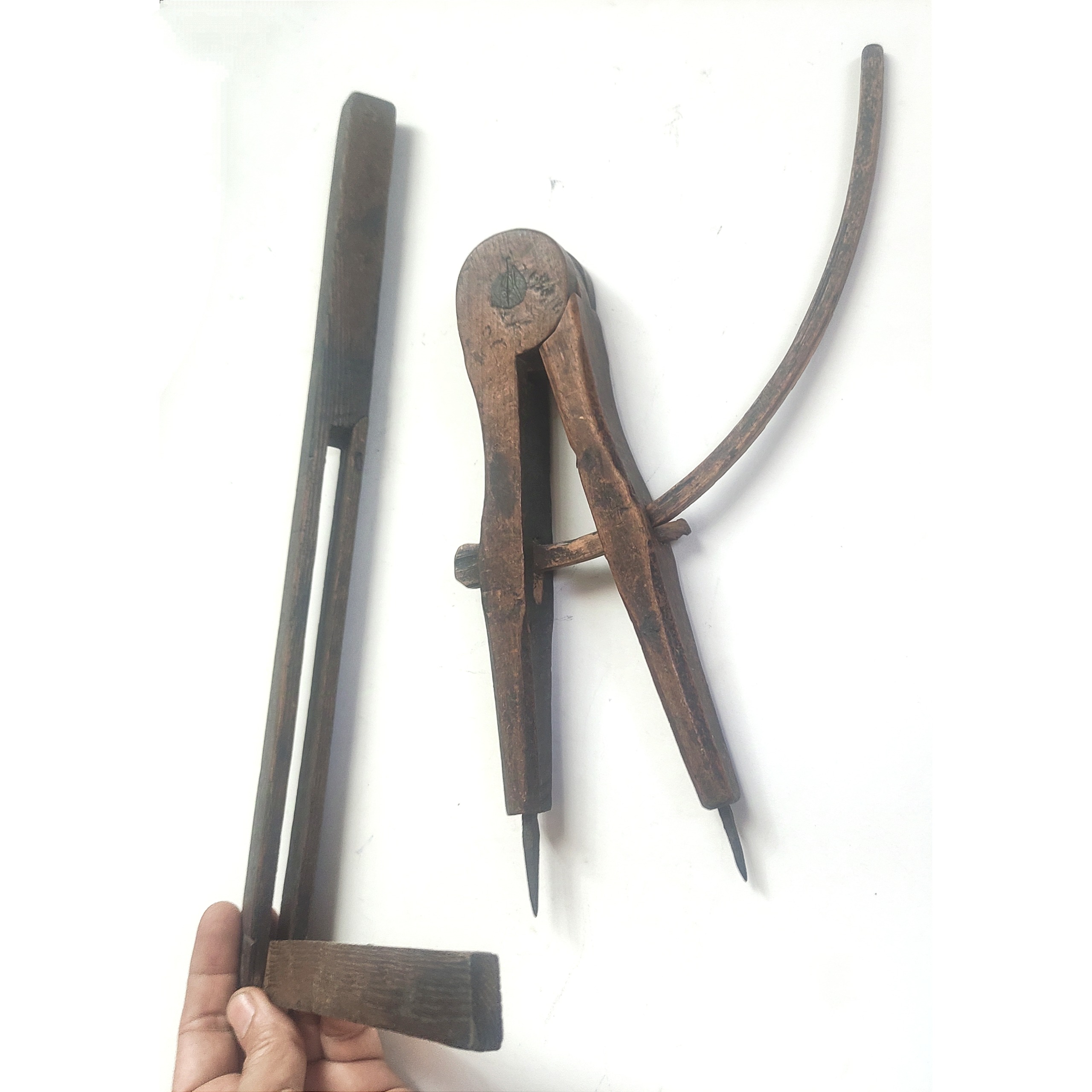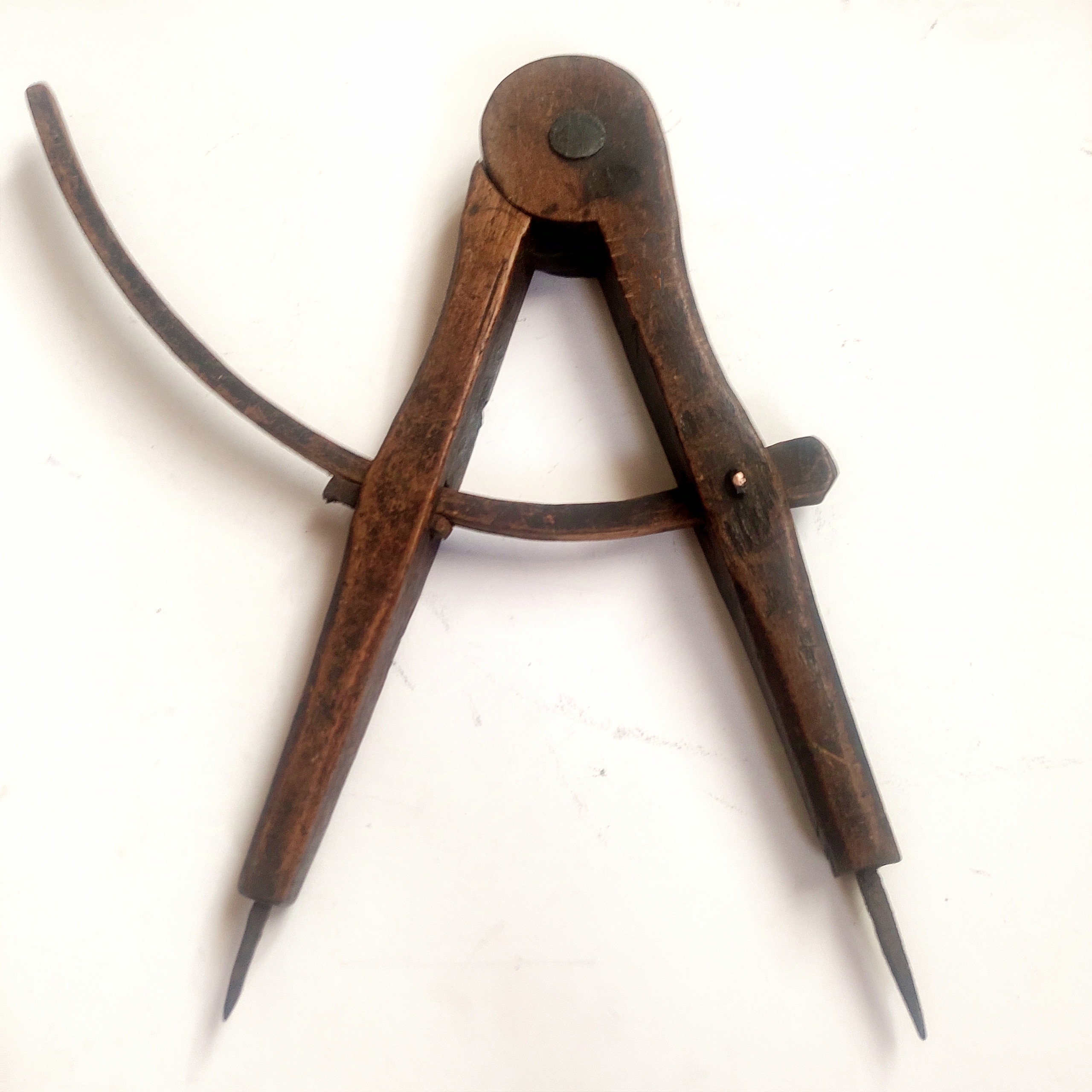 پرگار بالدار (Wing Divider) چوبی بسیار قدیمی که برای ترسیم یا اندازهگیری در نجاری یا نقشه برداری استفاده میشده است. و همچنین گونیای چوبی بسیار قدیمیک