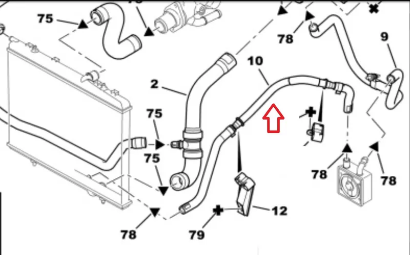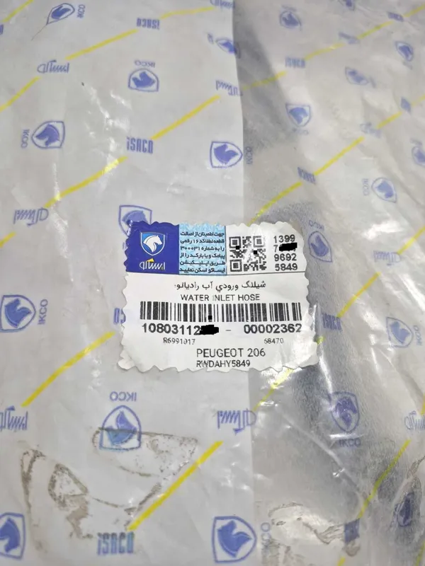 شیلنگ ورودی آب رادیاتور (شیلنگ ورودی آب به خنک کن گیربکس) شرکتی پژو 206 موتور TU5 و 207 اتومات AL4 تولیدات قبل از سال 1391