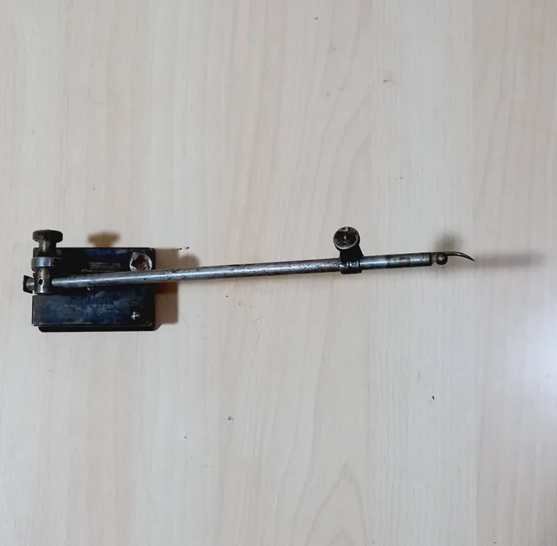 سوزن خط کش آمریکایی قدیمی و بسیار کمیاب که برای خط کشی دقیق روی ورقهای فلزی وووو کاربرد دارد .و توی گوگل سرچ کنید تمام مشخصات کامل و کاربردش میاد ..البته شایان ذکر میباشد که دستگاه نونو میباشد ولی بخاطر اینکه طرف پایین سوزن نوکش به اندازه ای نیم میلیمتر شکسته بخاطر اون درحد نو زدم ..البته اونم ایرادی نداره و در تصاویر کاملا مشخصه....دقیقا مطابق تصاویر میباشد