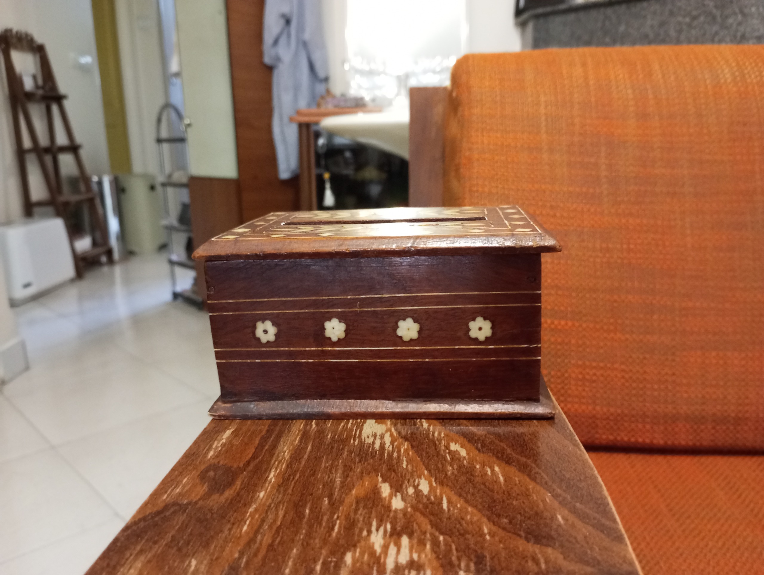 جعبه محکم و تمیز و سالم ، یک خراش کوچک روی در جعبه هست. قابل استفاده برای دکور ،جا سیگار و جا جواهری