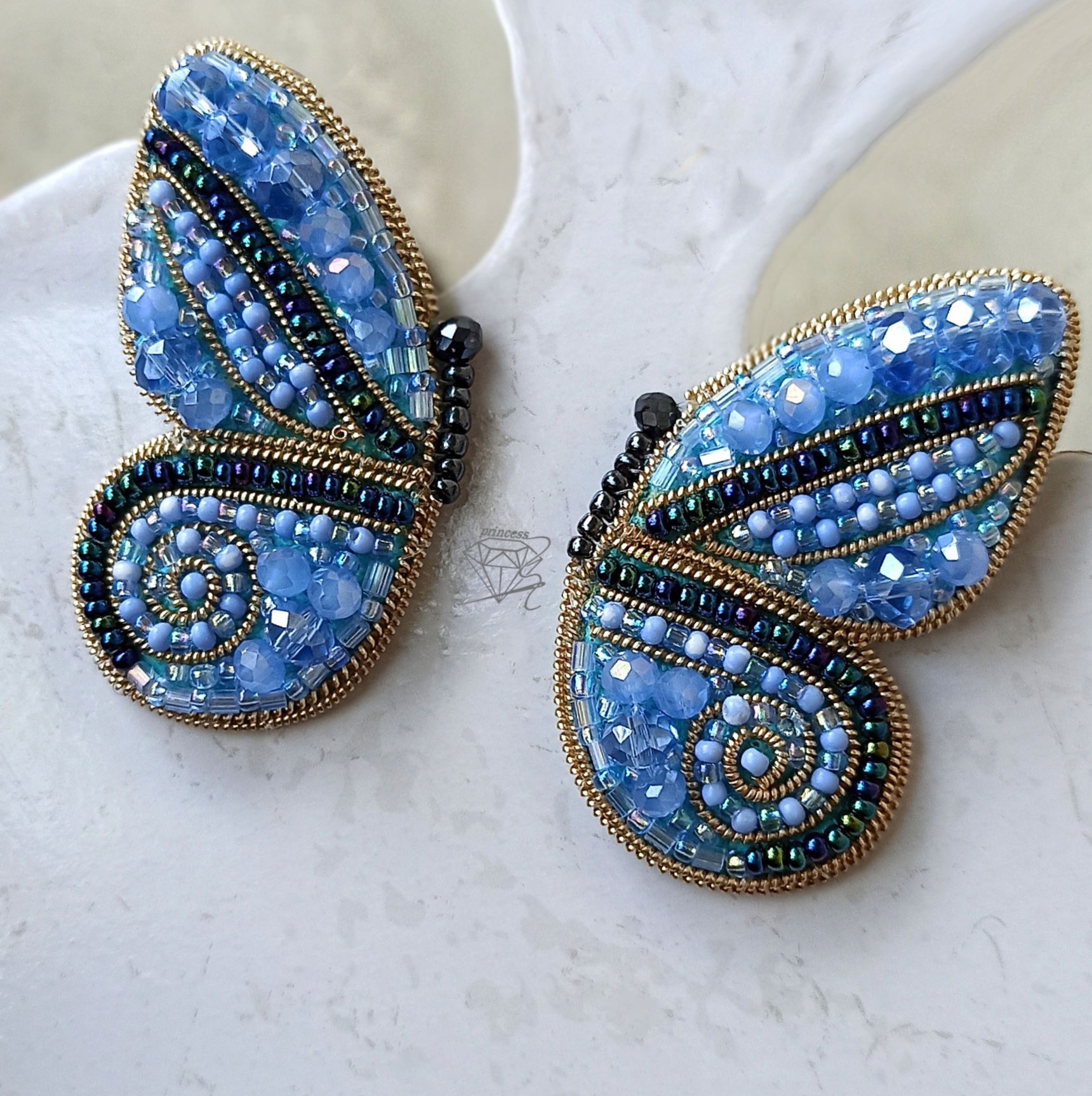 گوشواره ای جواهردوزی شده به رنگ آبی با طرح پروانه